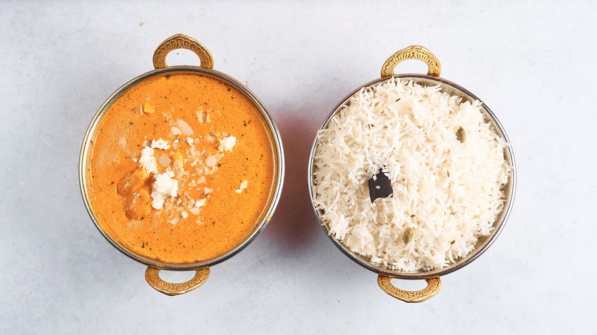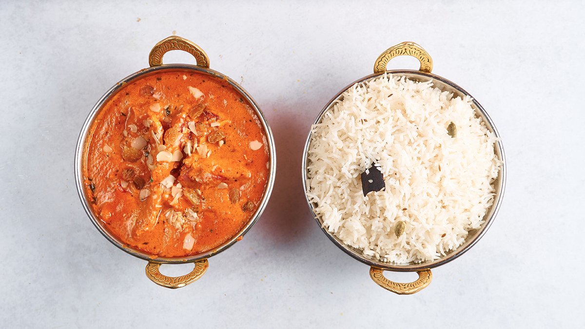 mit saftigen Tandoori-Hühnerstücken, Rosinen und Nüssen, in einer leckeren süßen-leicht pikanten und sahnigen Butter-Tomaten-Currysauce. Das Fleisch wird von Hähnchenkeule verwendet, beim abmachen des Hähnchen kann spuren von Knochen und Knorpel enthalten.
