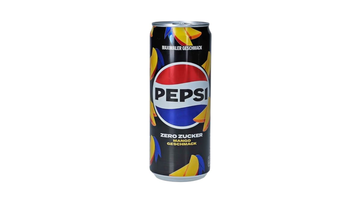 Eisteegetränk mit Mangogeschmack, Zucker, enthält Schwarzteeextrakt, mit Kohlensäure