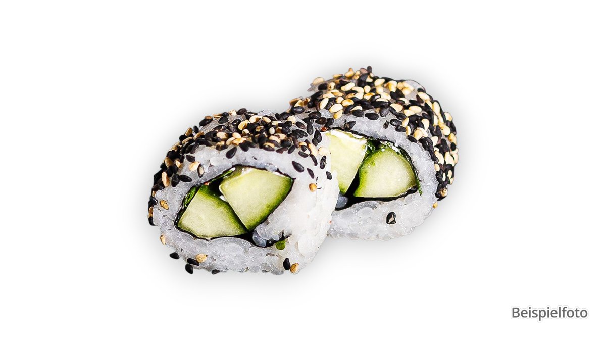 8 Stück mit Avocado, Gurken, Shiitakes und von Sesamkernen umhüllt