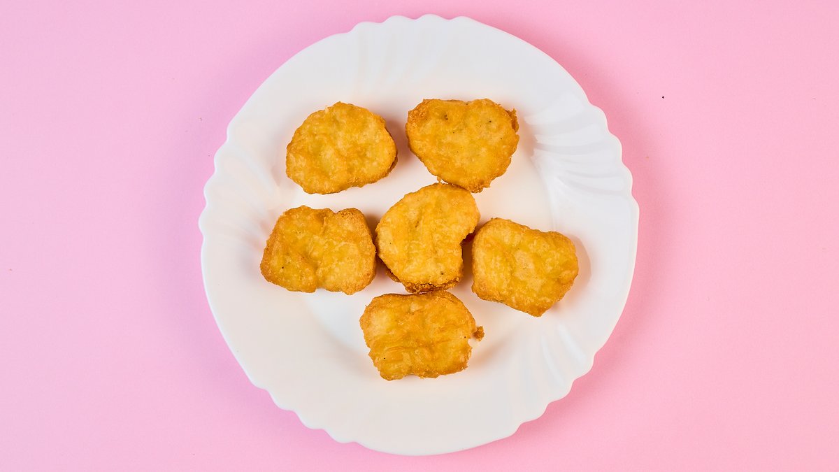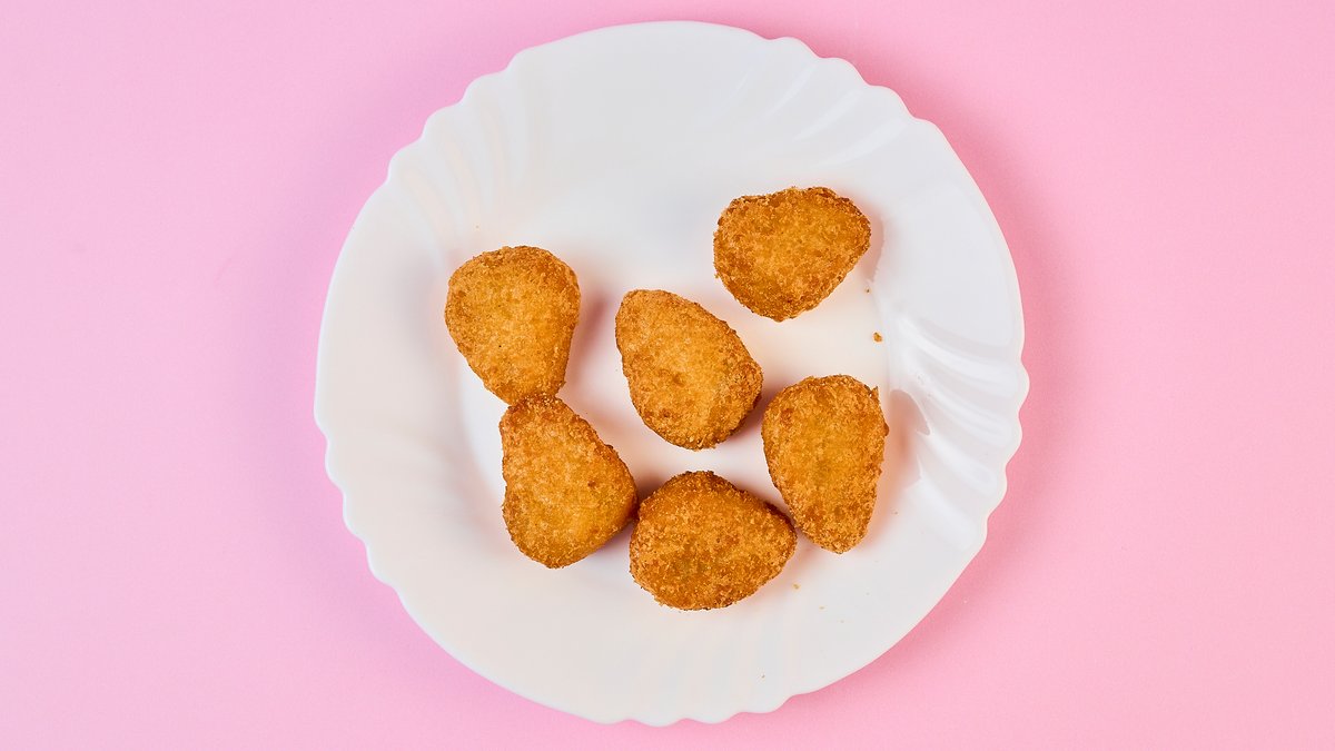 knusprig panierte Chicken Nuggets, auĂźen goldbraun und innen zart