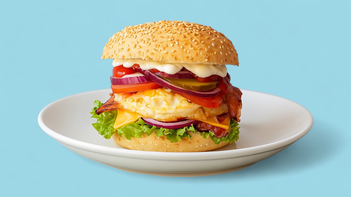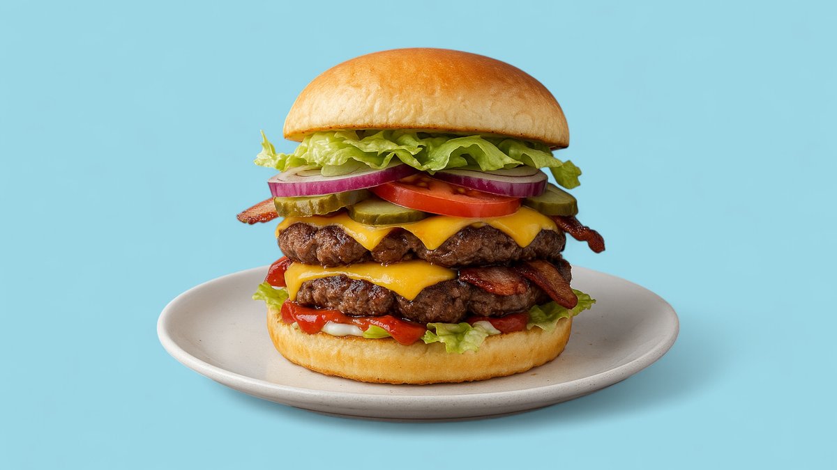 alle Burger werden mit saftigem Rinderhachfleisch, Tomaten, Zwiebeln, Eisbergsalat, Gewürzgurken, Ketchup und Mayonnaise zubereitet und in einer Größe deiner Wahl serviert („Hamburger „American Style”” wird ohne Salat zubereitet)