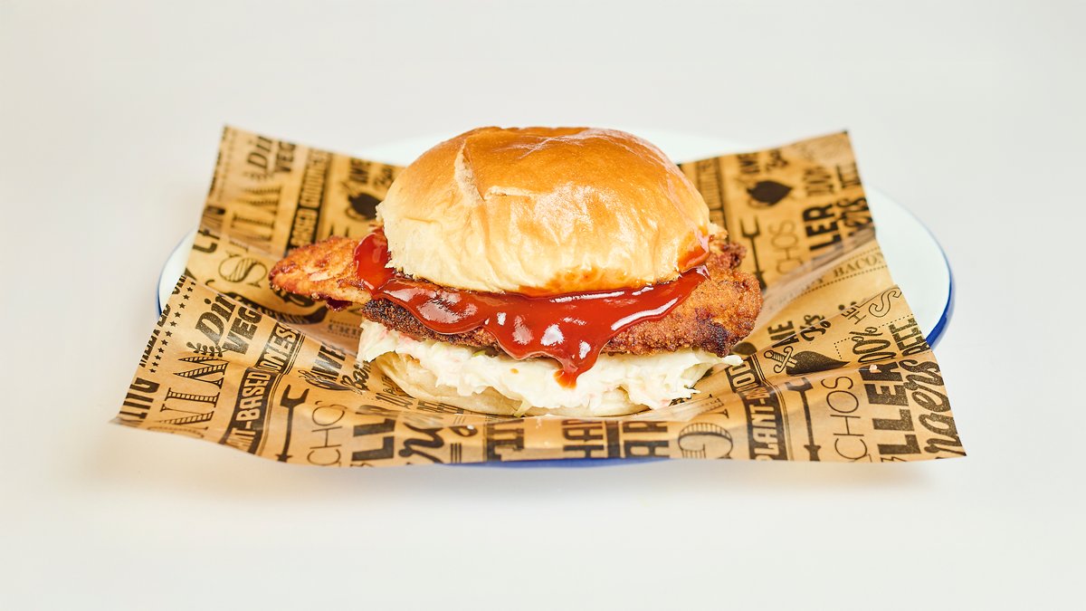 mit knusprigem Buttermilch-Hähnchen, Krautsalat und Barbecuesoße