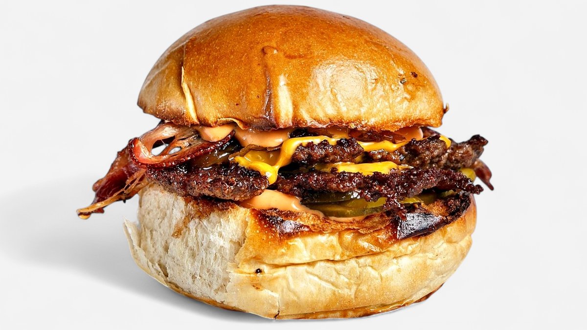 1 Smash Double Bacon Cheeseburger, Pommes frites & 1 alkoholfreies Getränk 0,33l nach Wahl