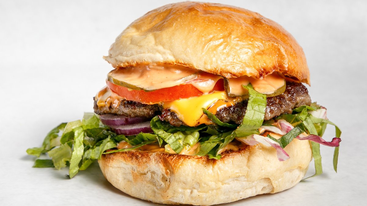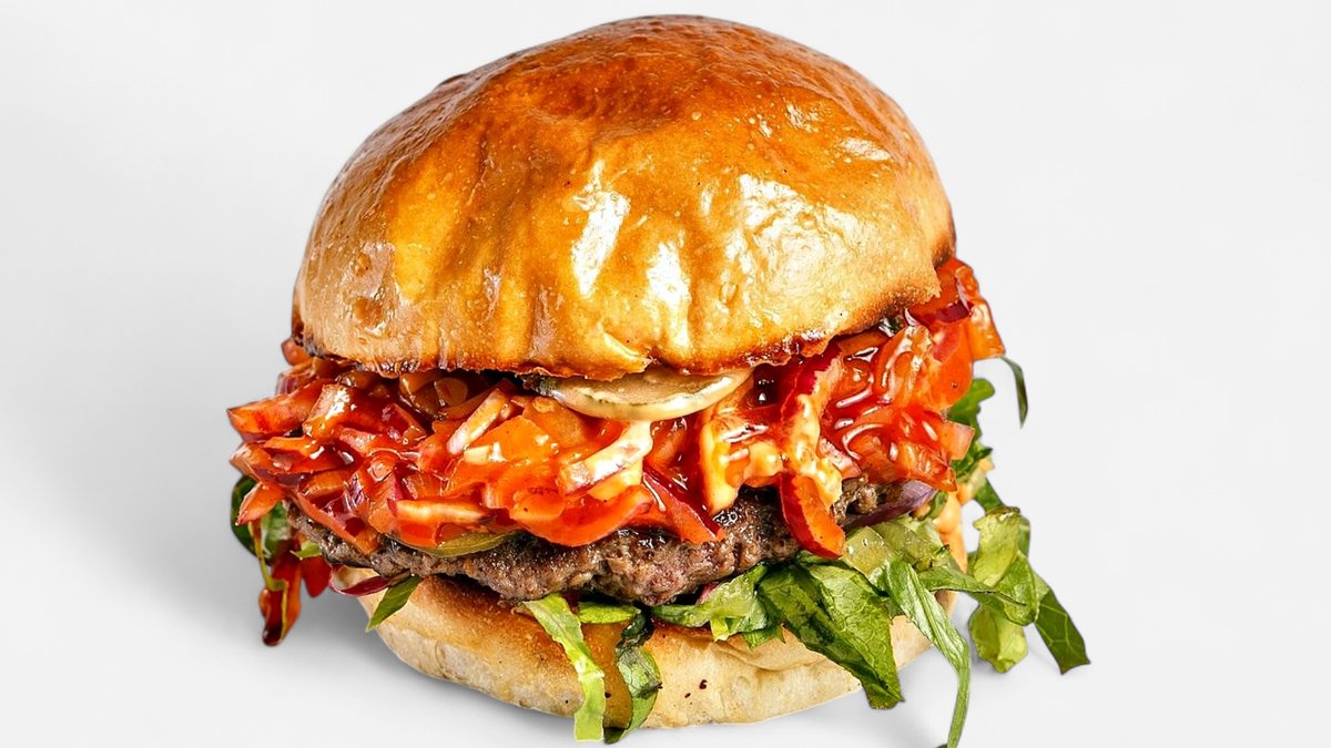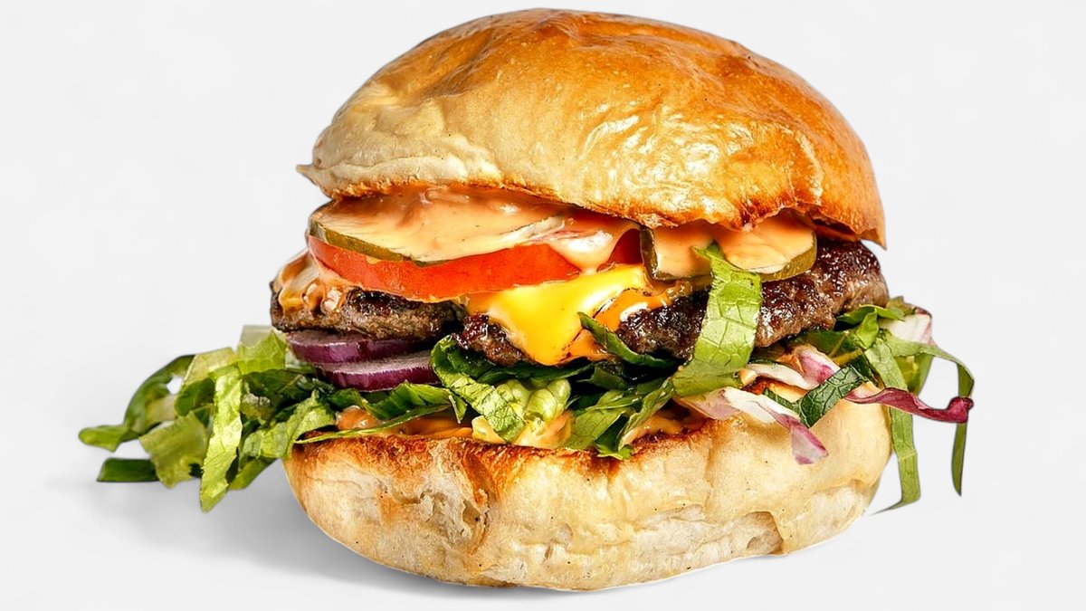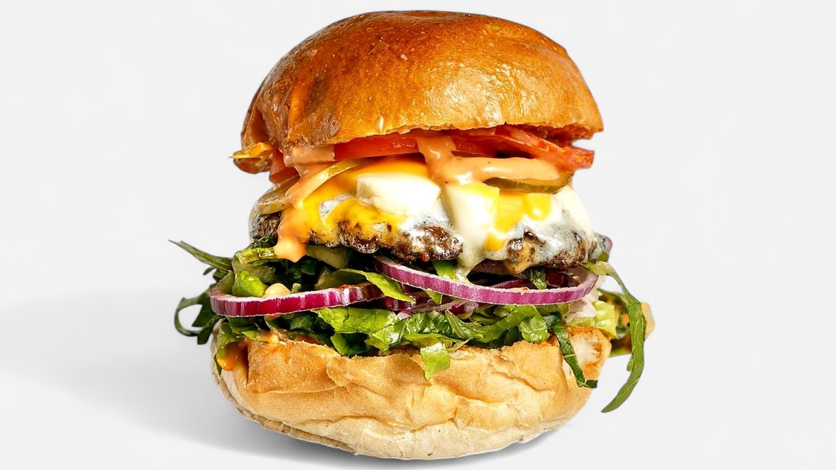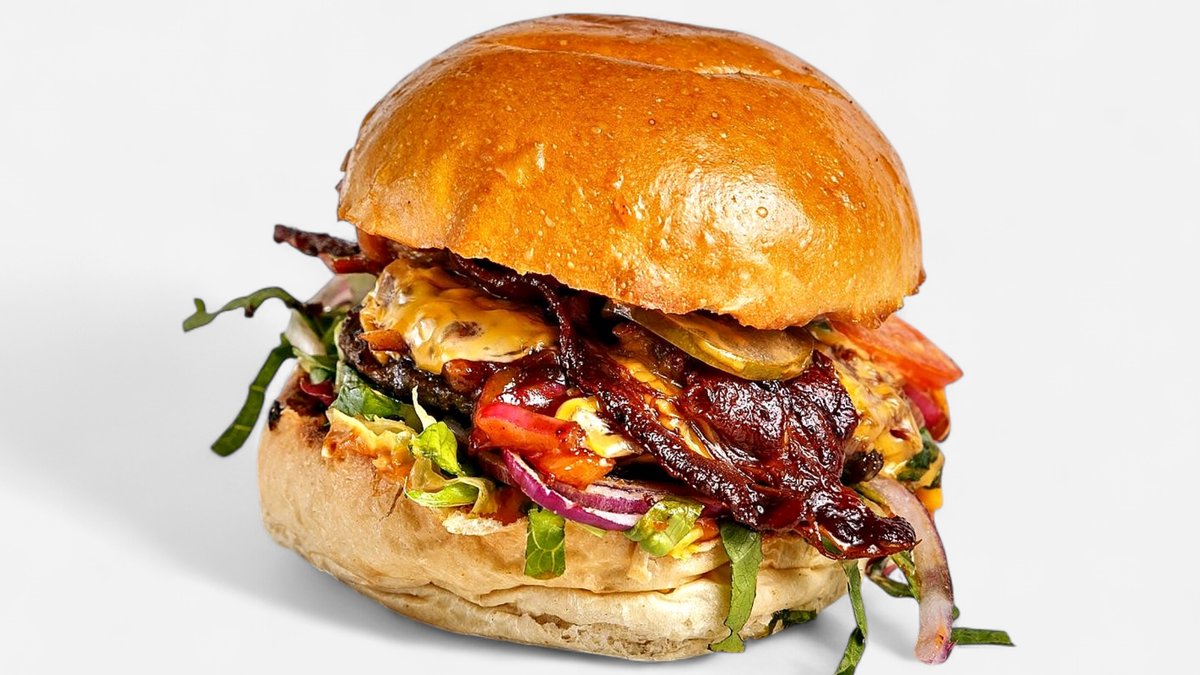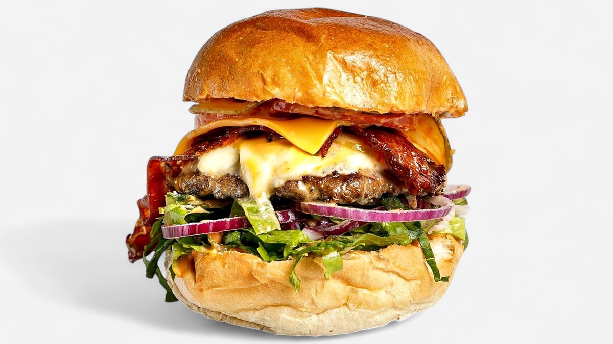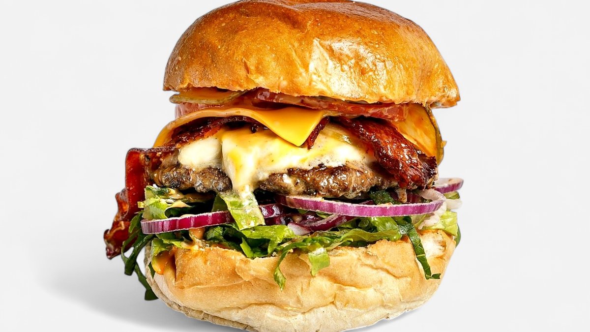 Ein saftiger Smash Burger mit herzhaftem BBQ-Geschmack: belegt mit zwei gegrillten Fleischpattys, geschmolzenem Käse, knusprigen Röstzwiebeln und goldbraunen Onion Rings. Verfeinert mit cremiger Mayonnaise und einer rauchigen BBQ-Sauce.