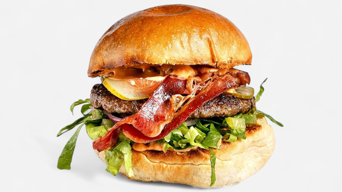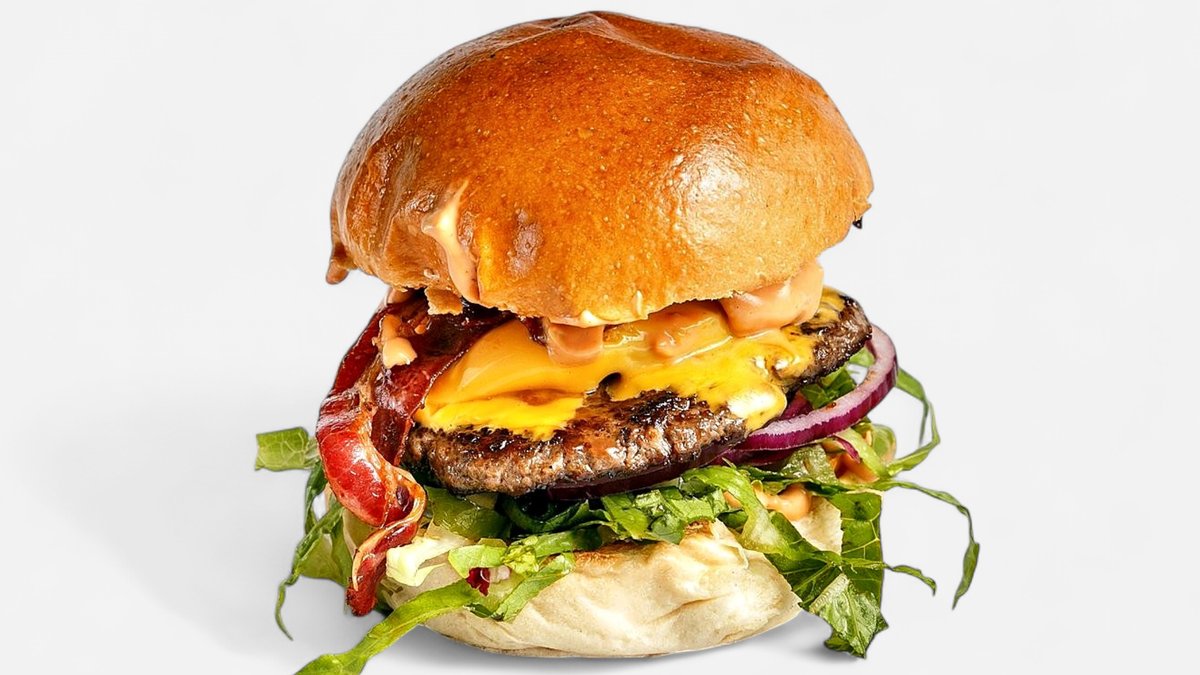 mit 130 Gr. hochwertigem Rindfleischpatty, Rinder Bacon und doppeltem Cheddar