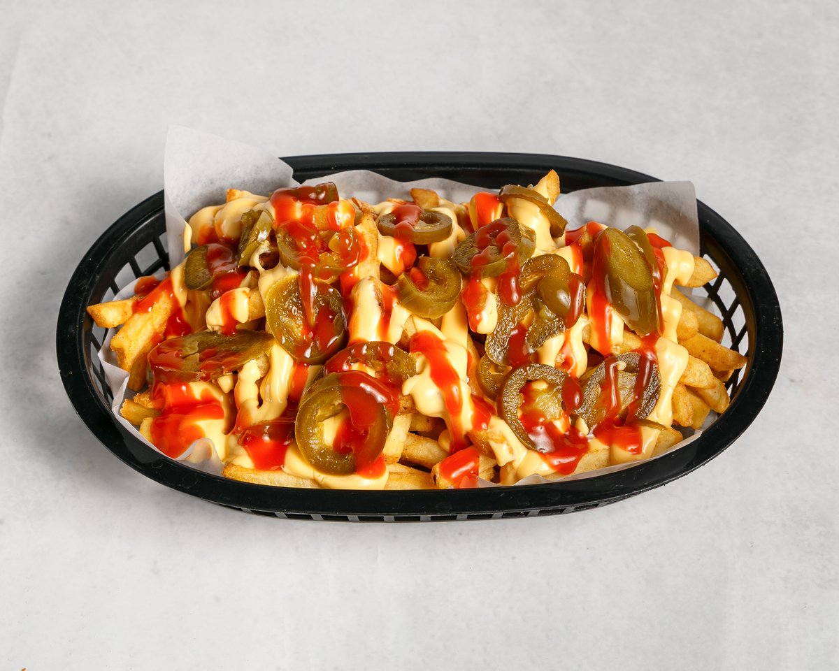 mit 130 Gr. hochwertigem Rindfleisch, Jalapeños, Cheddar und Chilisoße