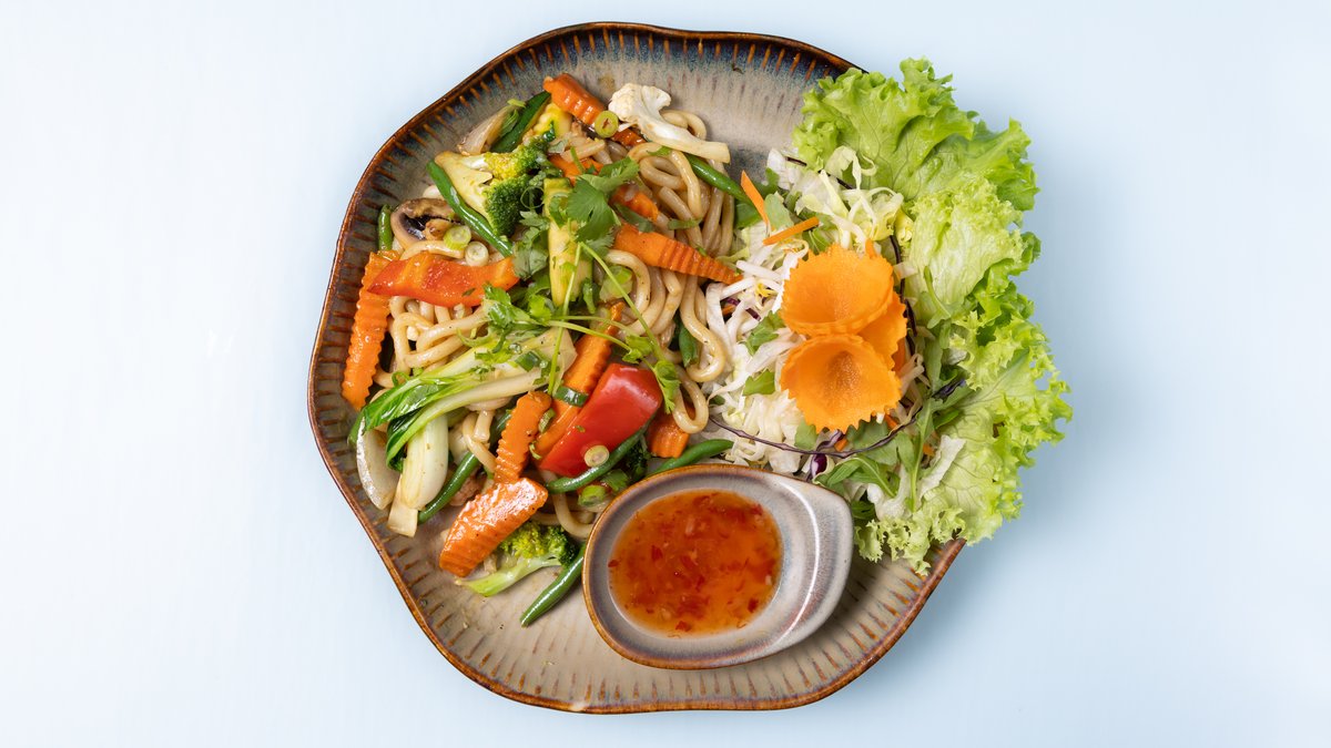 gebratene Udonnudeln mit verschiedenem Gemüse