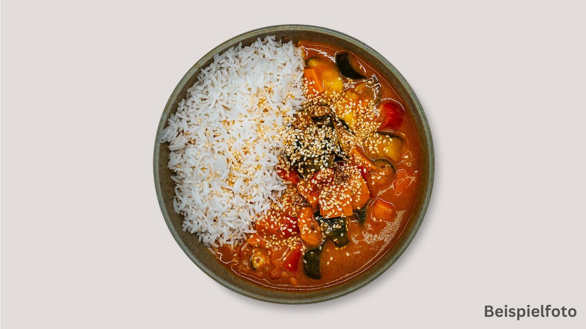 leicht scharf mit verschiedenem Gemüse und Reis