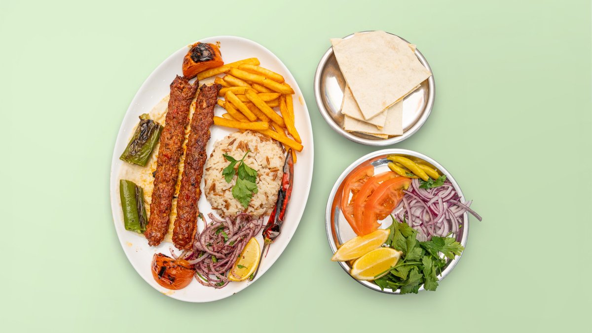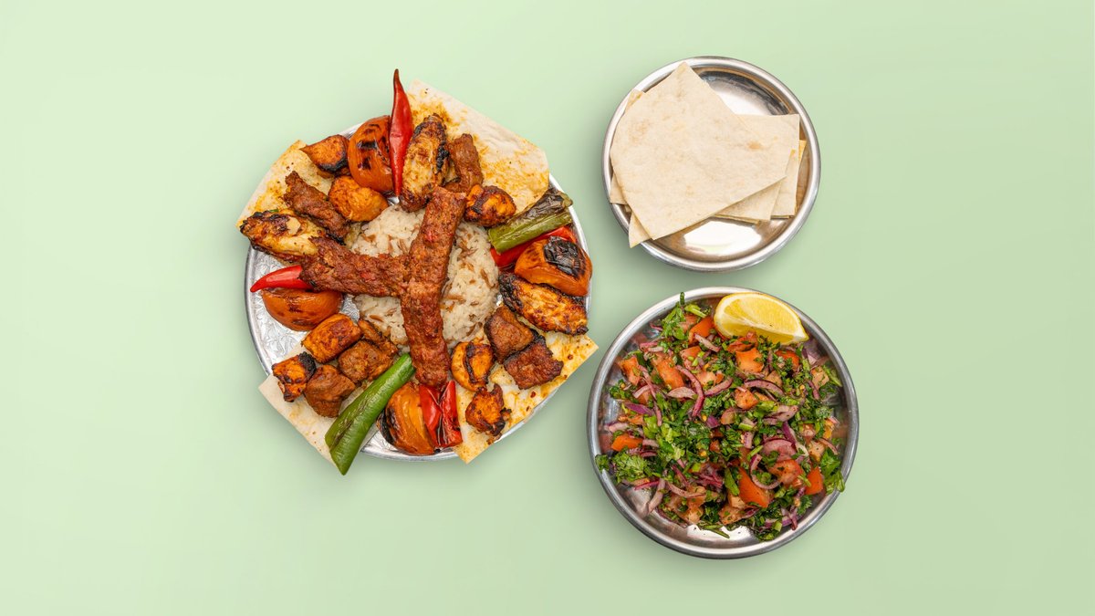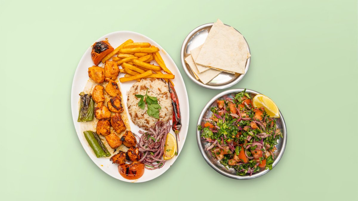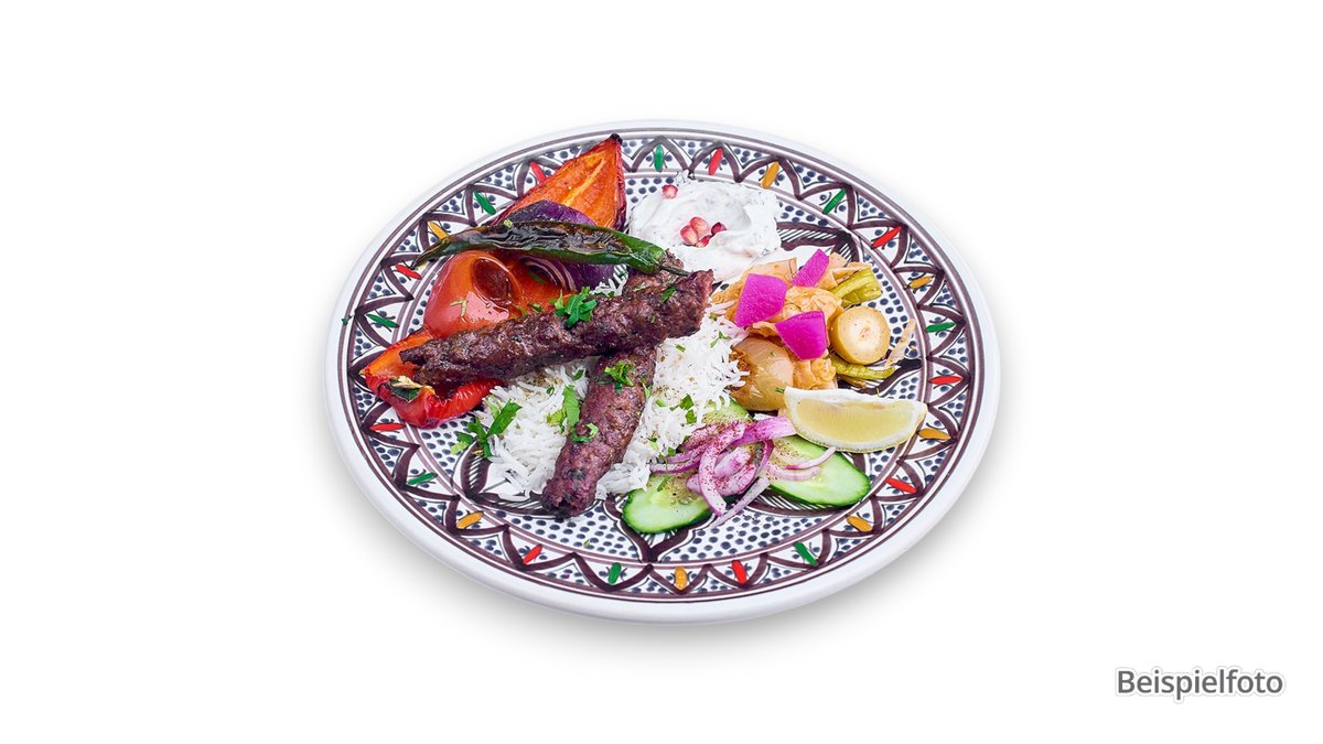 gemischte Grillplatte vom Hähnchen und Lamm mit einer Beilage deiner Wahl