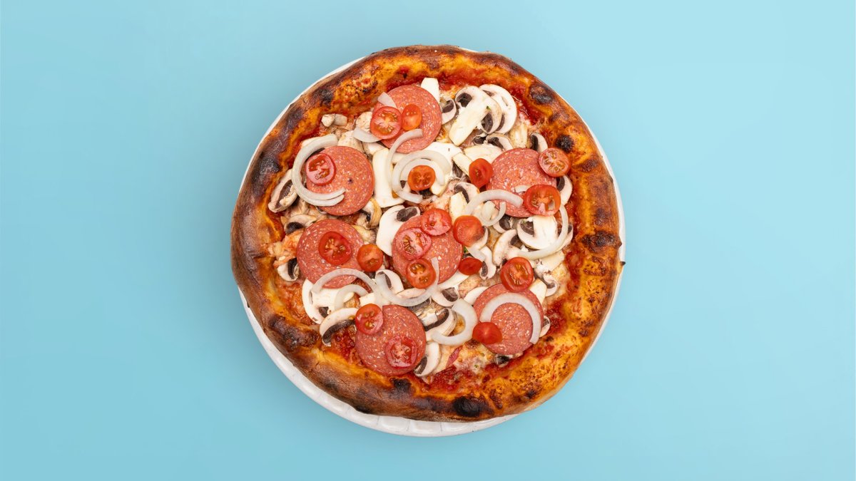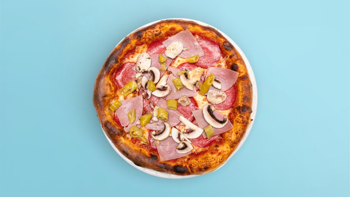 mit Salami vom Rind, Putenschinken, Champignons und Peperoni