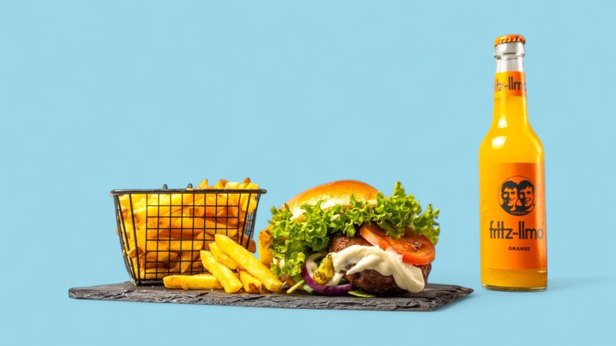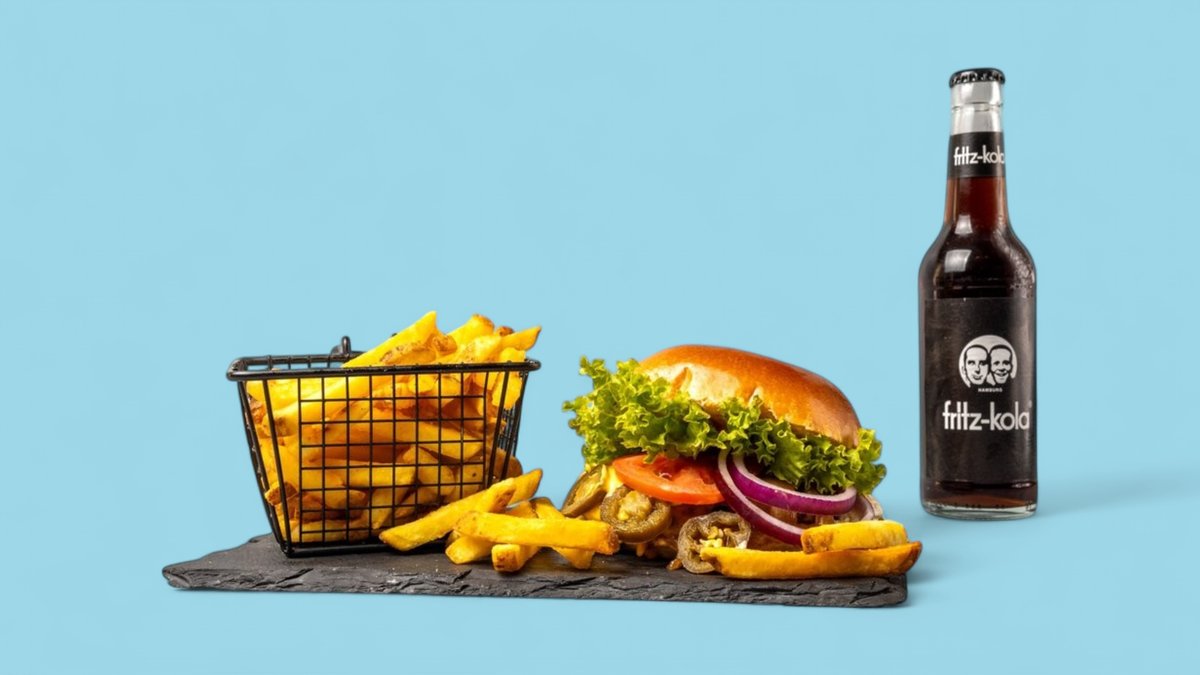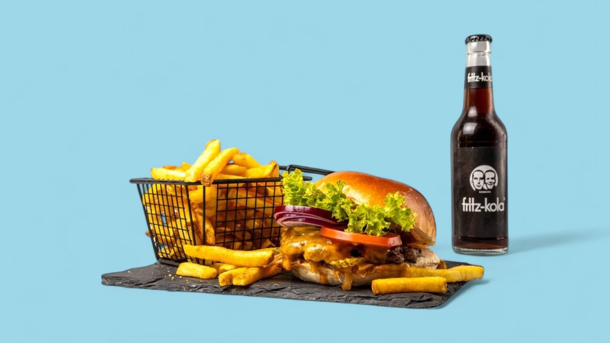 alle Menüs werden mit einem Burger, Pommes frites und einem alkoholfreien Getränk 0,33 l deiner Wahl serviert