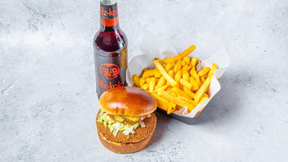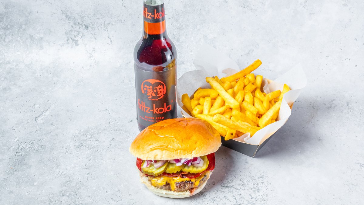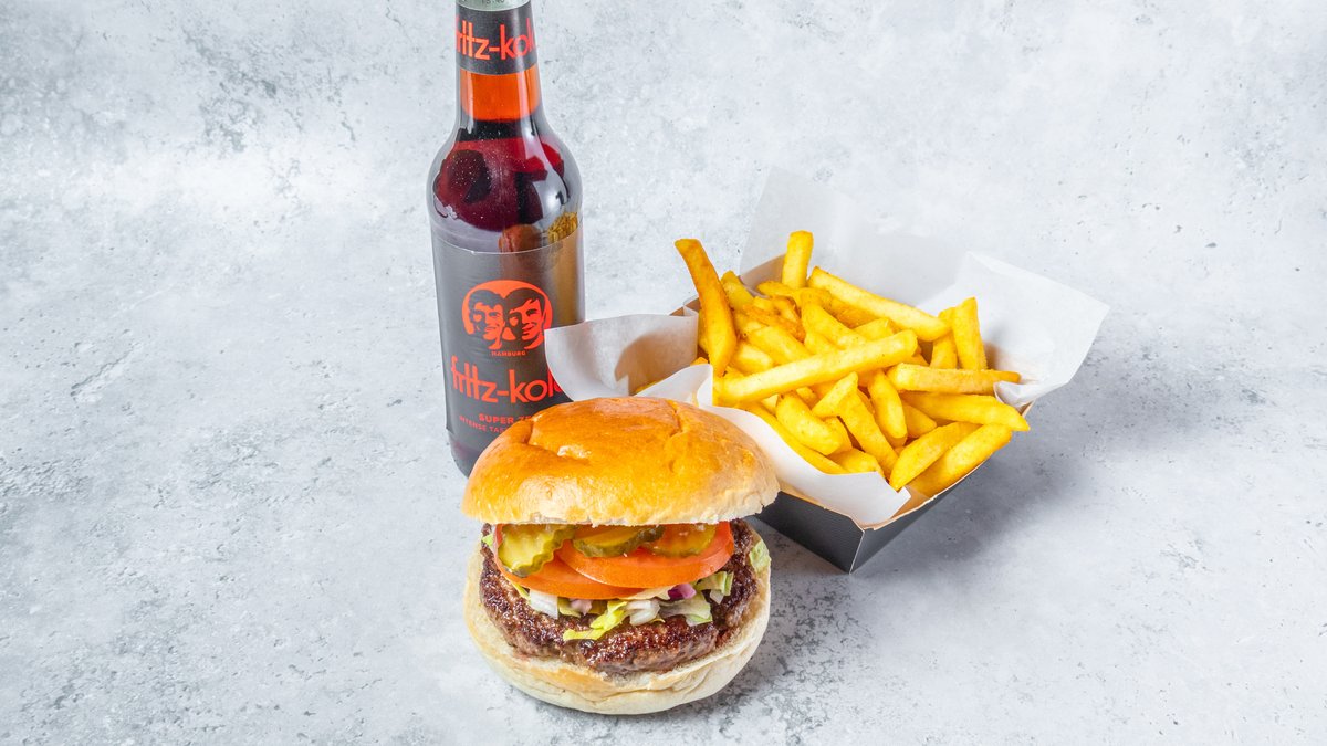 das Single Menü wird mit einer Pommes und einem 0.33l Getränk nach Wahl serviert