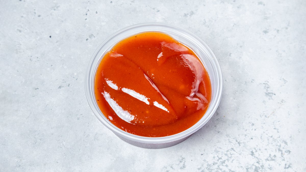 mit frittierter Hähnchenbrust, selbstgemachter Honey-Garlic-Soße, Ketchup und Mayonnaise