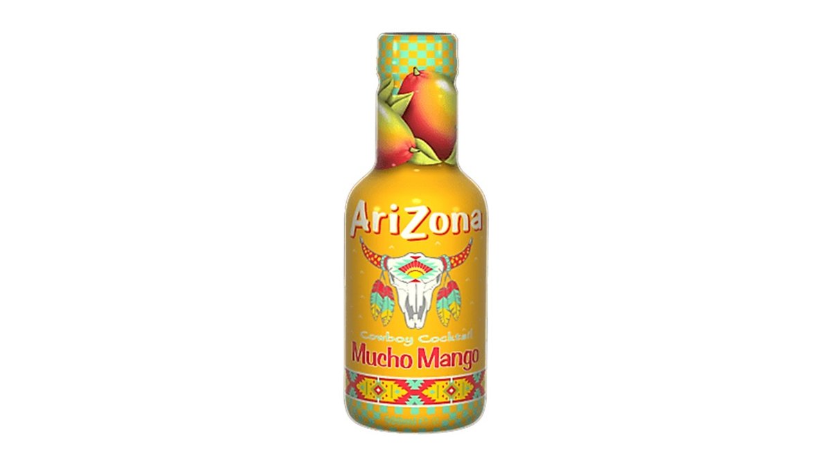Eisteegetränk mit Mangogeschmack, gesüßt, enthält Schwarzteeextrakt, Zucker, Kohlensäure