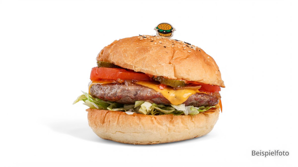 mit 1 Patty, 2 Beef Bacon Scheiben, hausgemachter BarbecuesoĂźe, Zwiebeln und Gurken