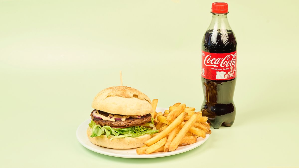 1x Hamburger 1x Pommes frites 1x alkoholfreies Getränk nach Wahl