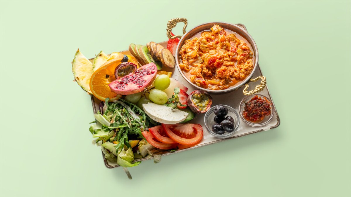 mit Knoblauchwurst, Würstchen, Oliven, Frischkäse, Schafskäse, Nutella, Salami, Rührei, Marmelade, Butter, Gouda, Tomaten, Gurken, Mozzarella, Käsepaste, Chilipaste, Menemen, Obst und 2x Brötchen, serviert in einer Größe deiner Wahl Das Gericht wurde mit Schokolade zubereitet und kann Spuren von verschiedenen Nüssen enthalten.
