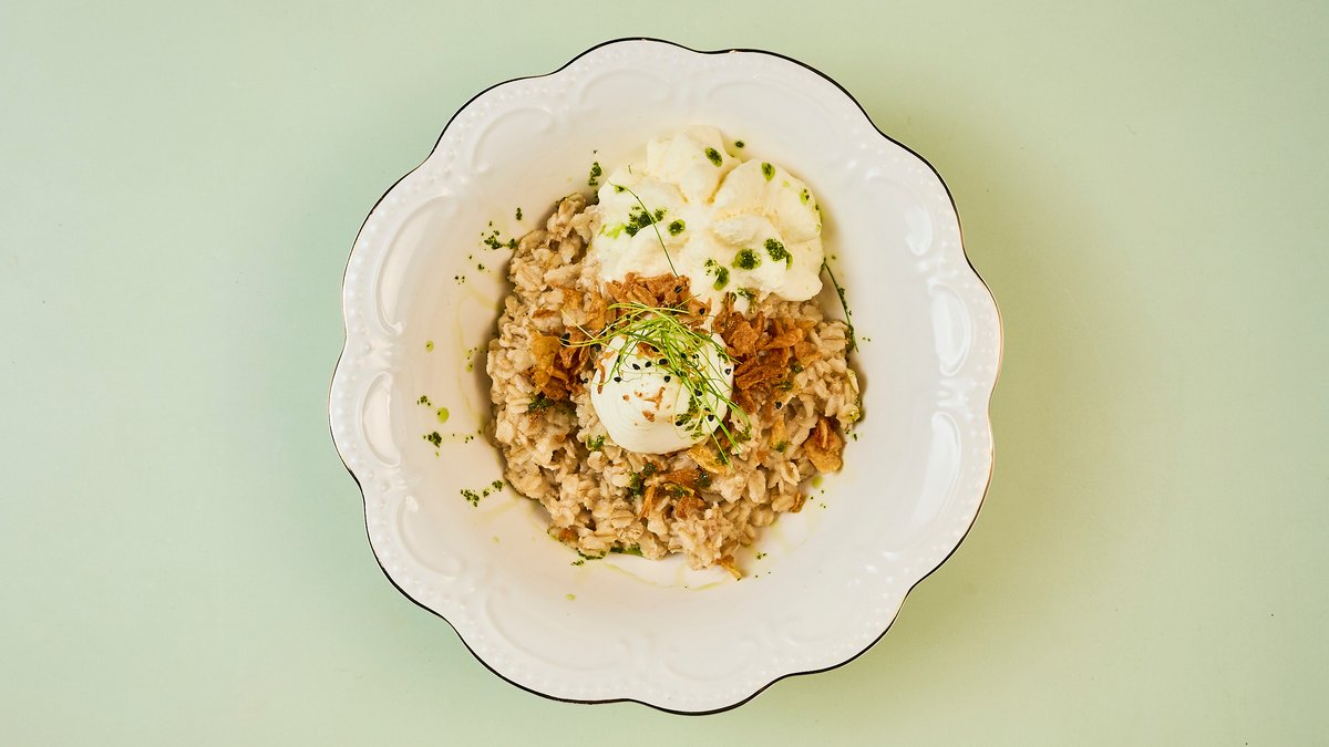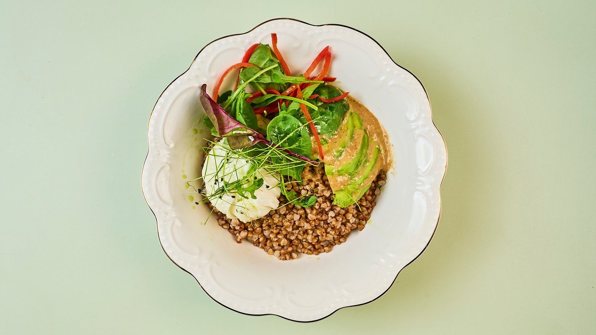 gekochter Buchweizen mit Avocado und pochiertem Ei