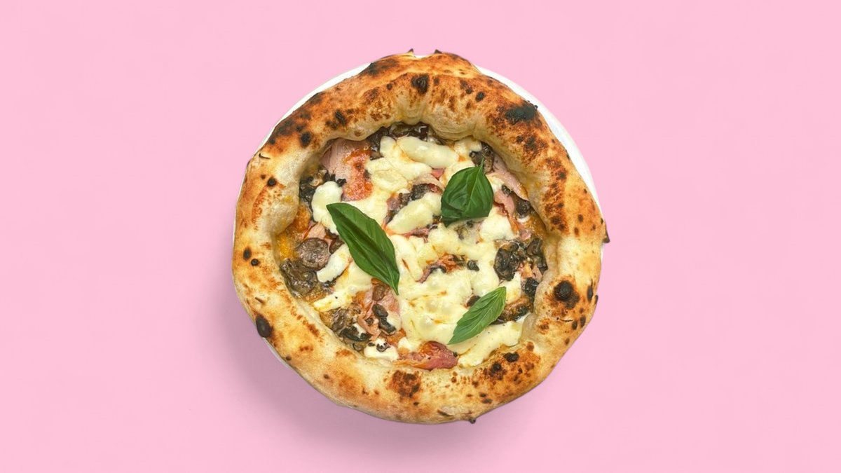 mit San Marzano Tomaten, Grana Padano, geräuchertem Provola, Basilikum, schwarzem Pfeffer und kaltgepresstem Olivenöl