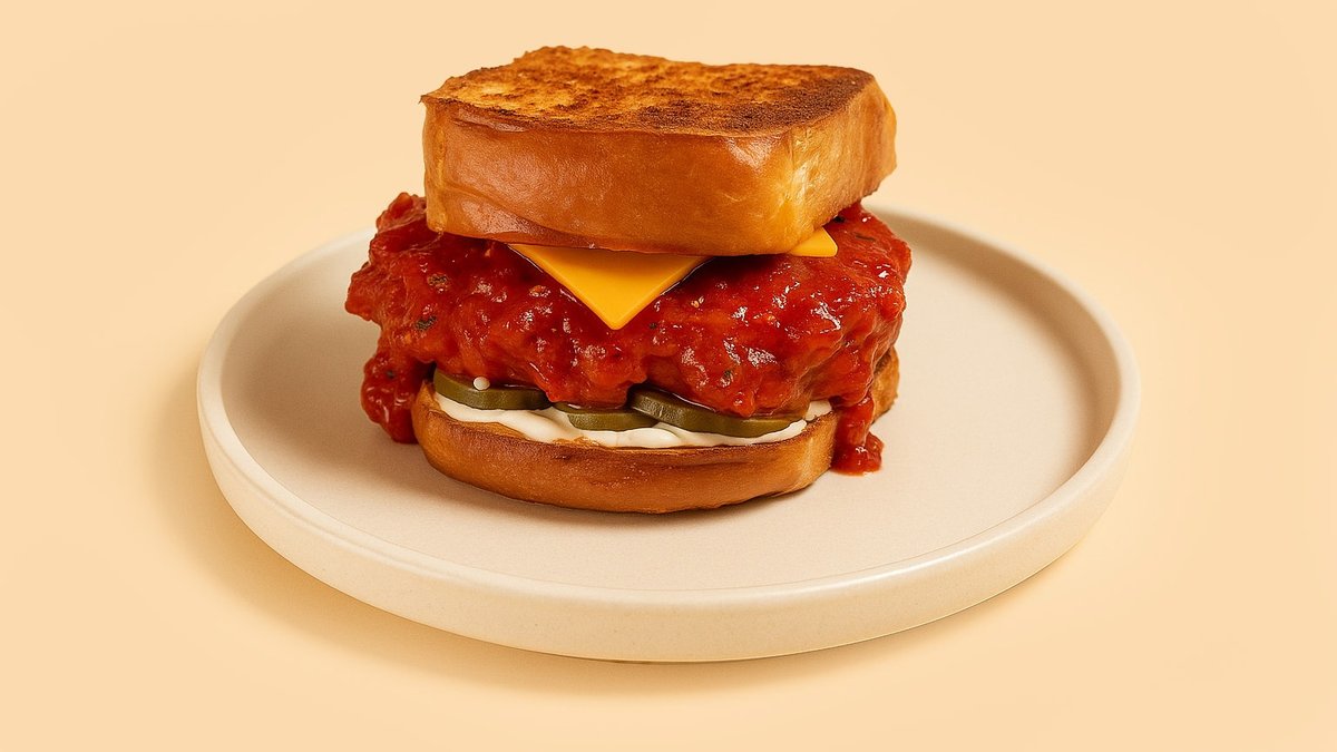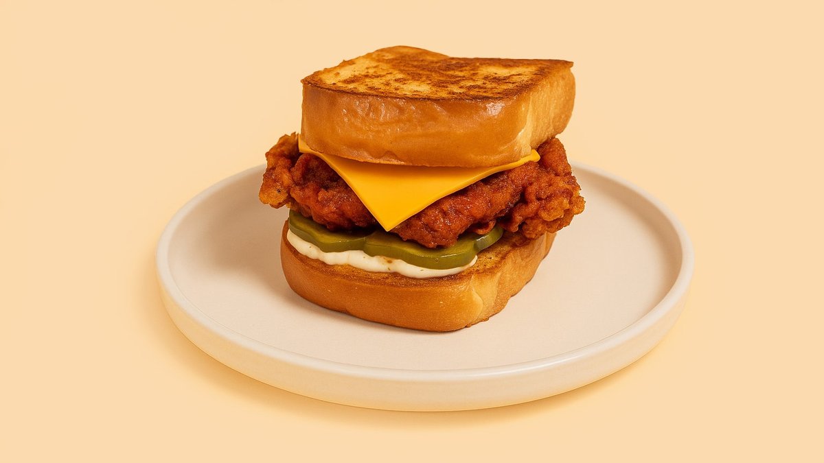 mit Mayonnaise, Essiggurke, in Nashville Hot Honey getunkt, und Cheddar