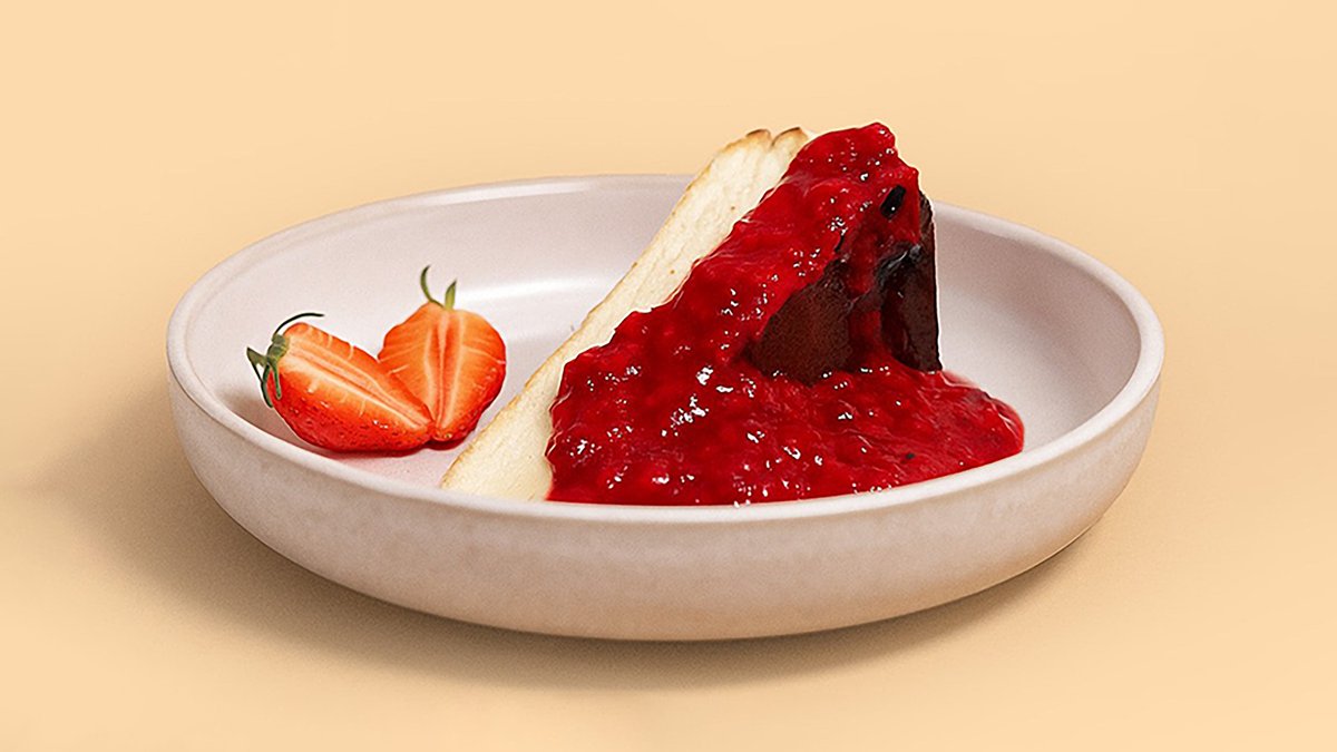mit Erdbeere, Pistazie und belgischer weißer Schokolade Das Gericht wurde mit Schokolade zubereitet und kann Spuren von verschiedenen Nüssen enthalten