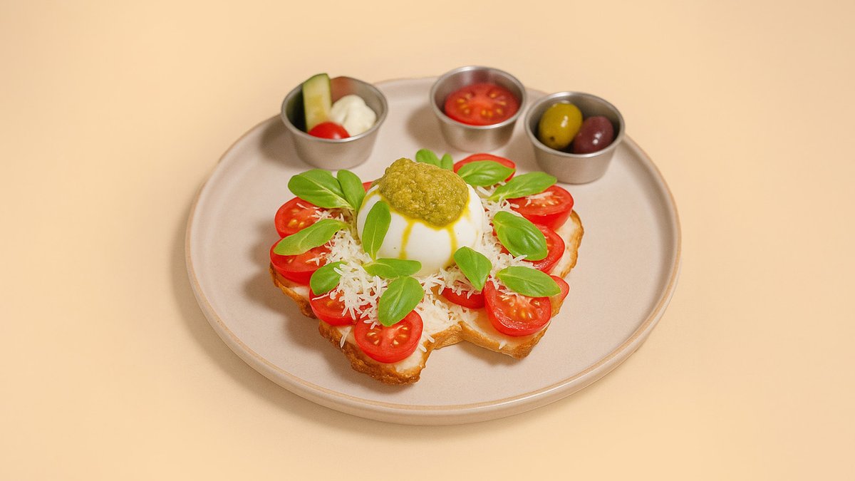mit Oliven, Croissant, Burrata und Pesto