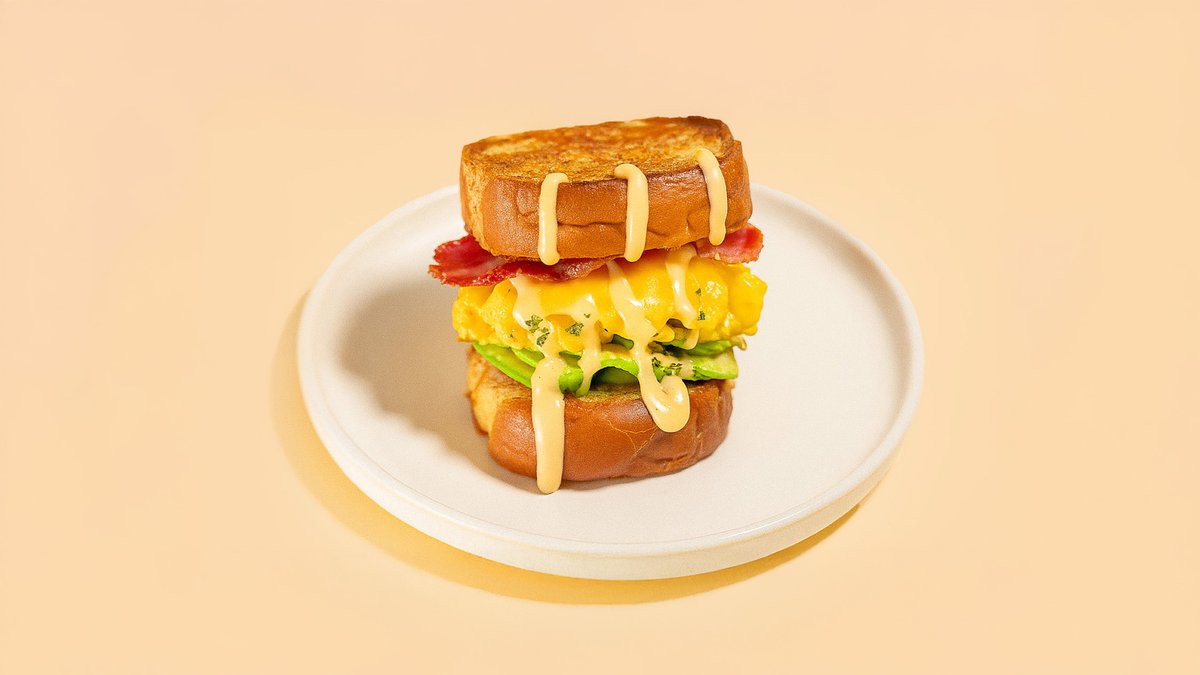 mit Rührei, Cheddar, Rindfleisch-Bacon, Avocado, hausgemachter Soße und Brioche-Brötchen