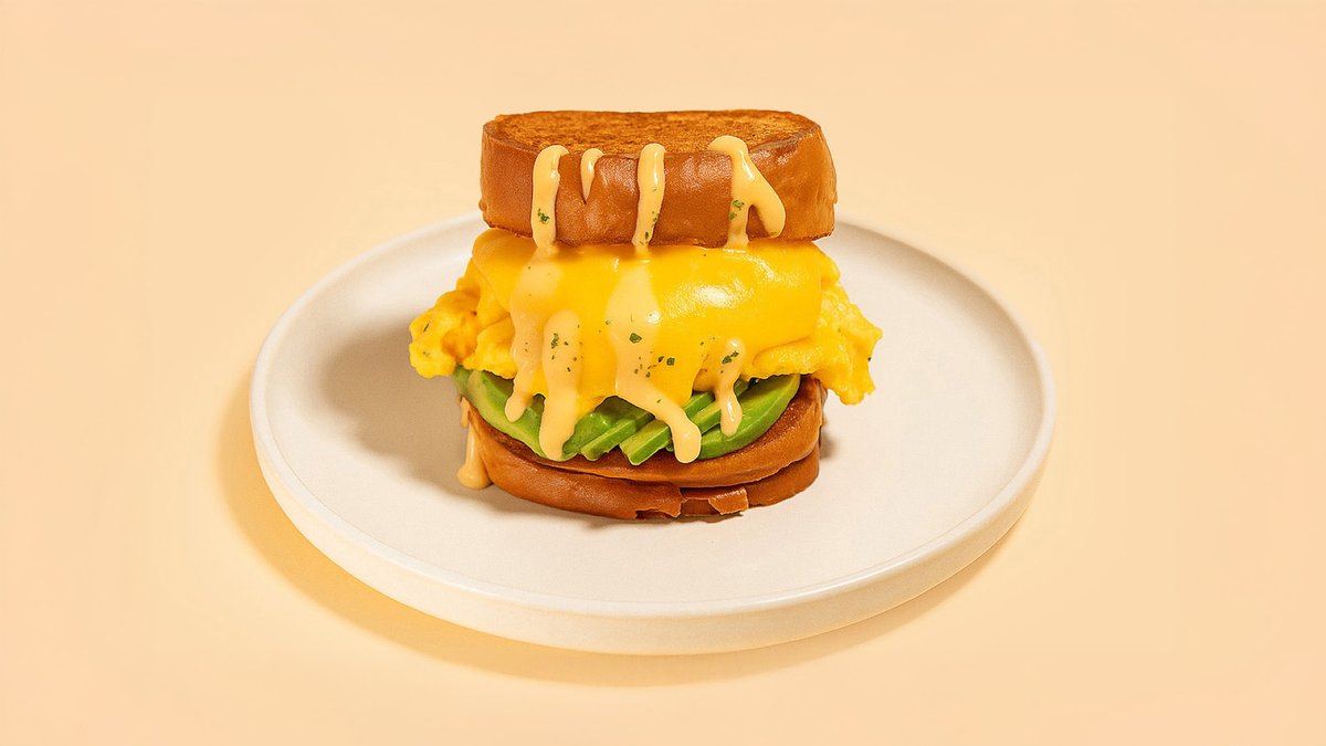 mit Rührei, Cheddar, doppelter Avocado, hausgemachter Soße und Brioche-Brötchen