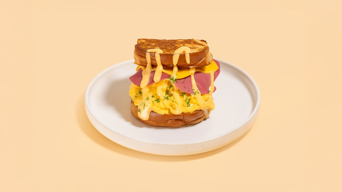 mit Rührei, Cheddar, Rindfleisch-Bacon, hausgemachter Soße und Brioche-Brötchen