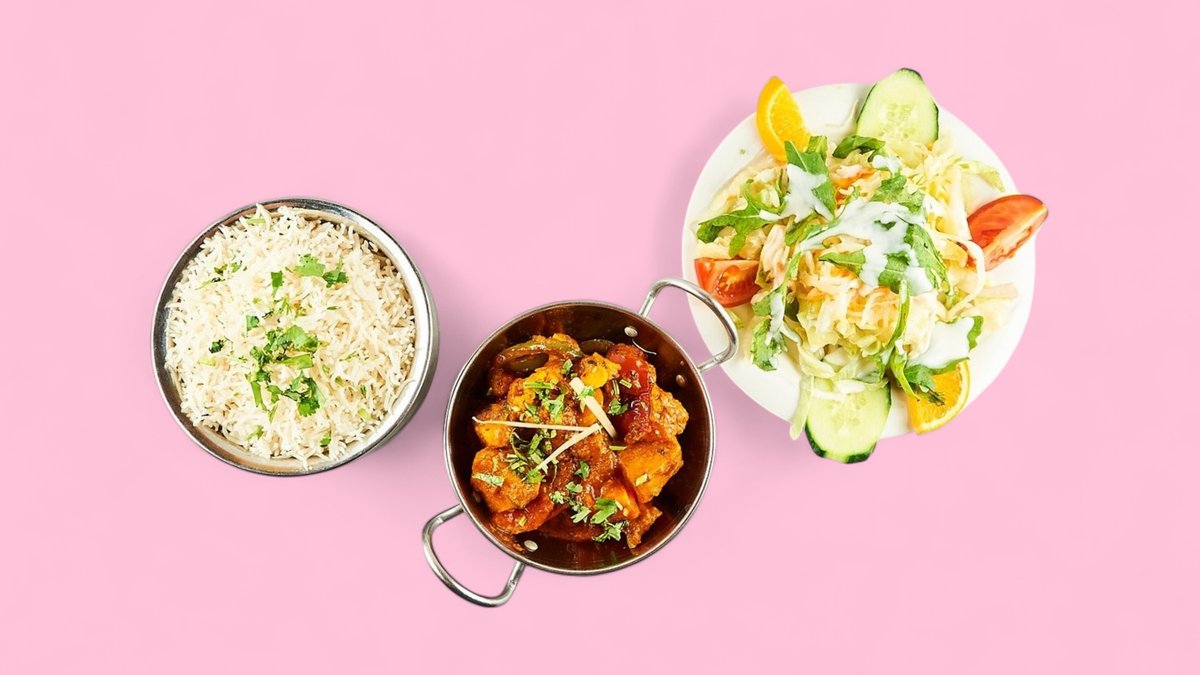 alle Gerichte werden mit Tagessuppe und pakistanischem Basmatireis serviert und sind von 12:00 bis 16:00 Uhr lieferbar