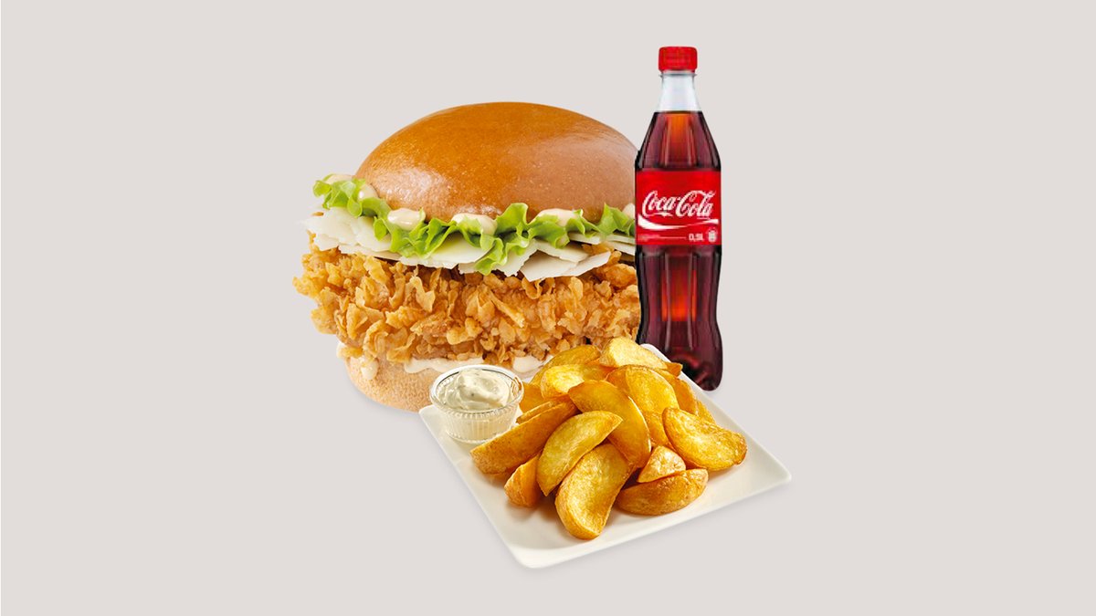 alle Menüs werden mit Potato Wedges und einem Getränk 0,5 l deiner Wahl serviert