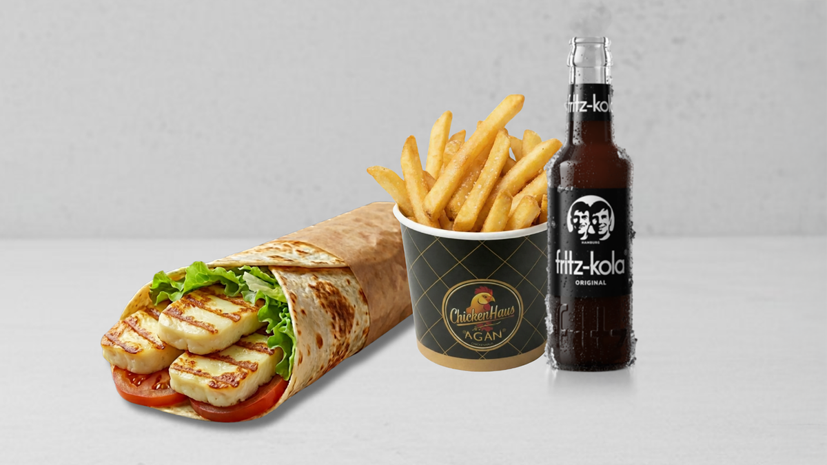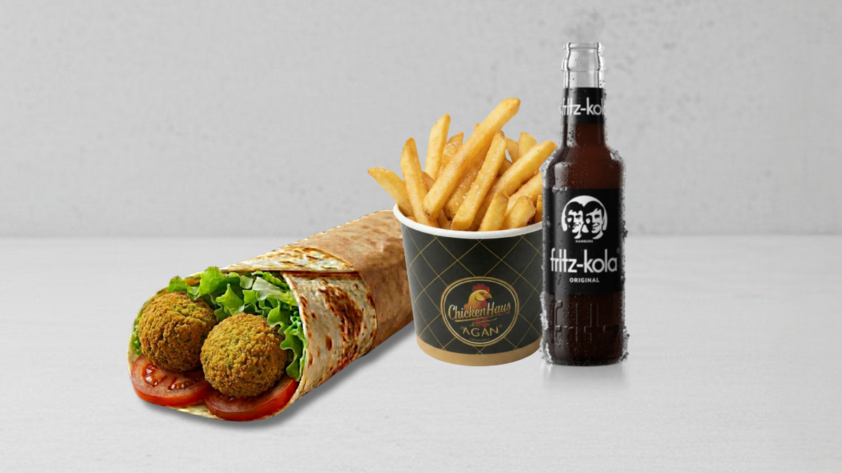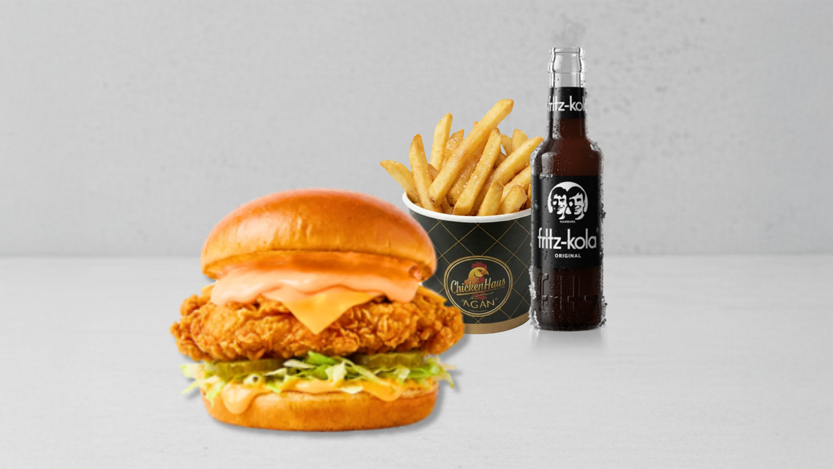 alle Menüs werden mit Pommes frites und einem Getränk 0,2 l deiner Wahl serviert