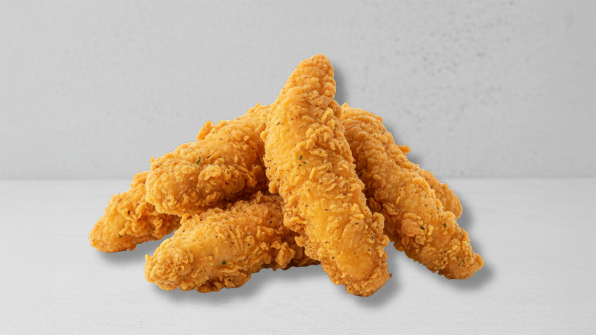 8 frisch panierte Innenfilet mit Pommes oder Reis 3 Soßen und 1 Getränk