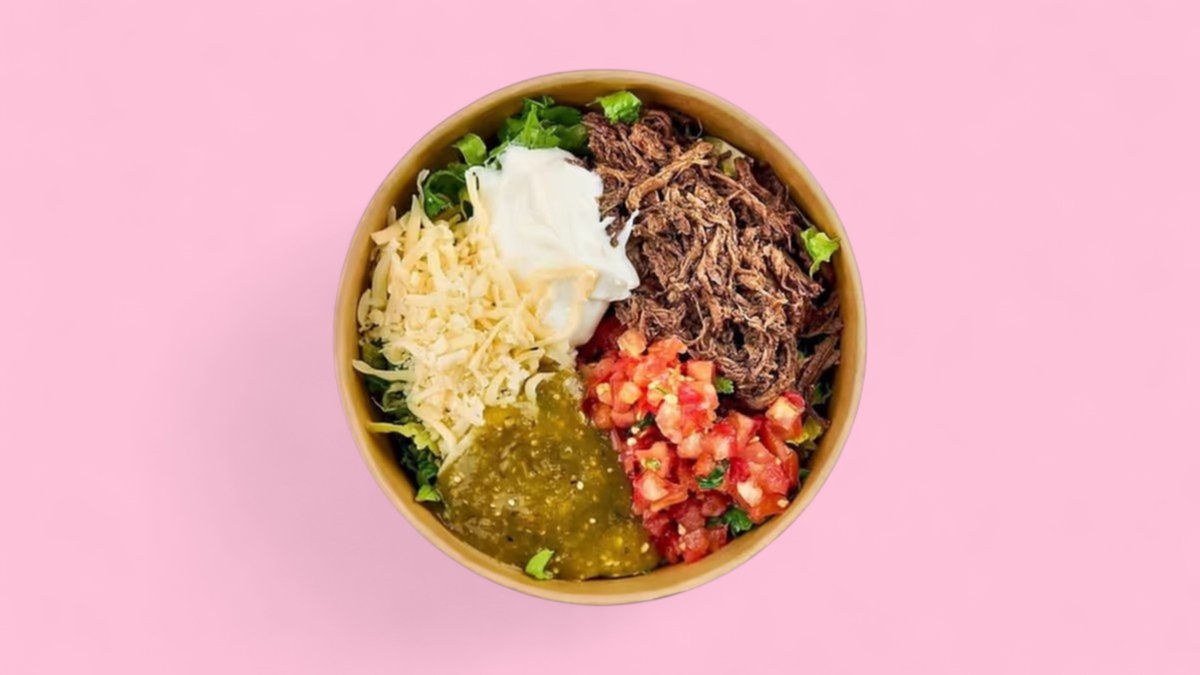 Keto-freundlicher Salat. - Salatbasis - Pulled Beef (Rindfleisch) oder gegrilltem Hähnchenfleisch - Pico de Gallo Tomatensalsa, Salsa Verde, Salsa Roja (scharf) - Käse & Sauerrahm - Guacamole optional (mit Aufpreis) 41g Eiweiss | 3g Ballaststoffe | 568 kcal (Rind, ohne Guacamole)