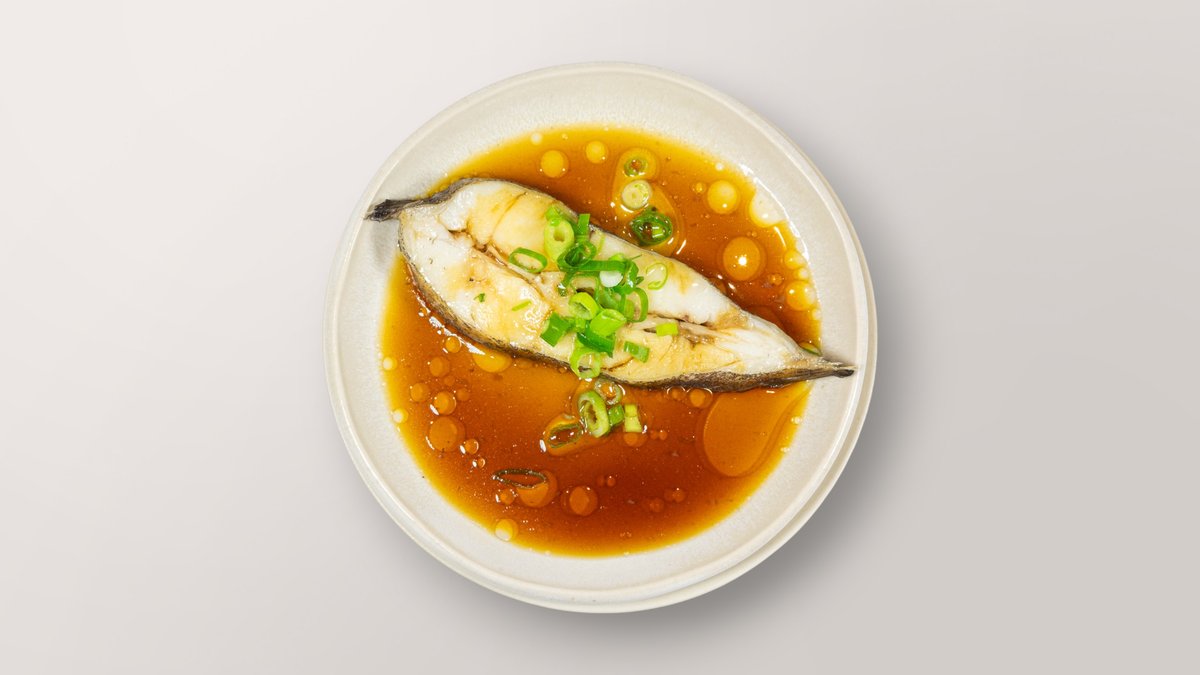 F2. Gedämpfte Kabeljau-Stücke mit leichtem Soja-Dressing