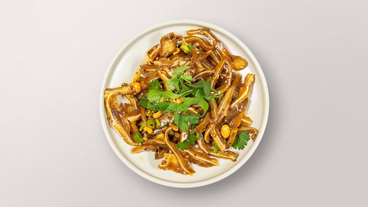 mit aromatischem Frühlingszwiebelöl und gewürztem Soja