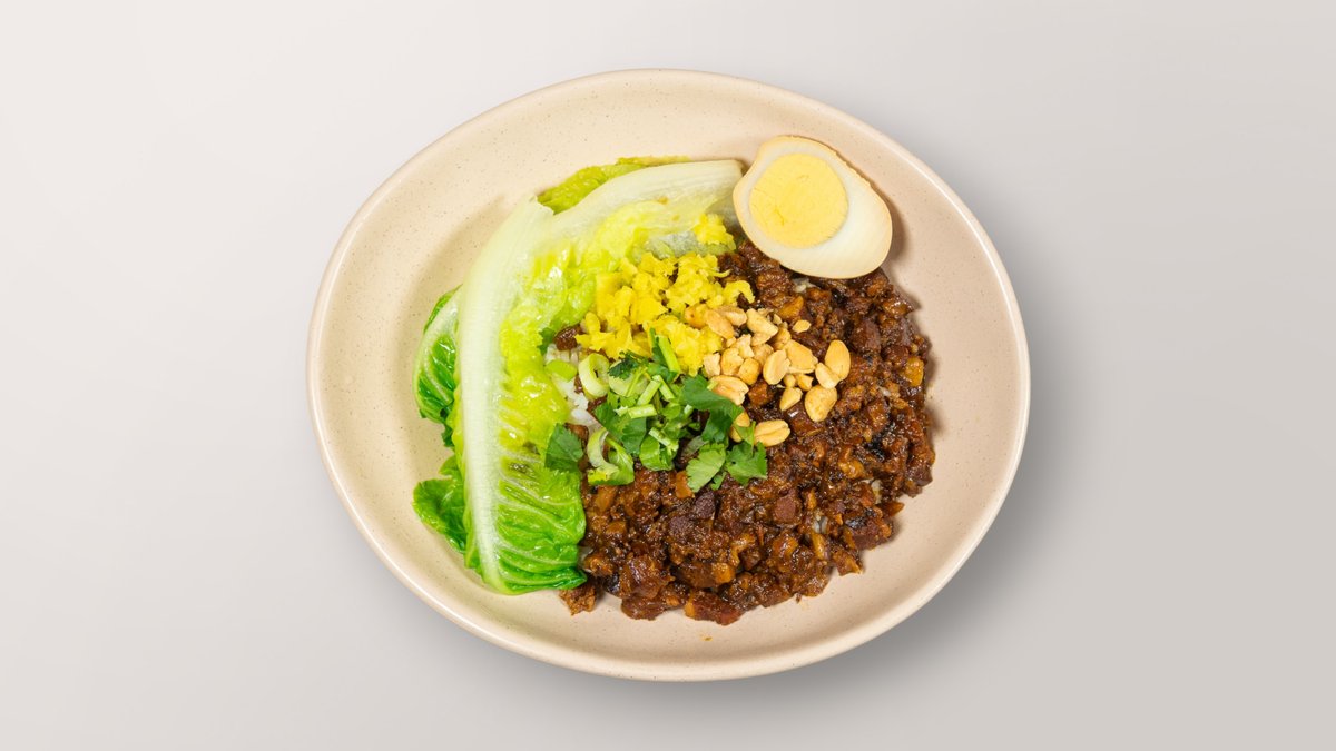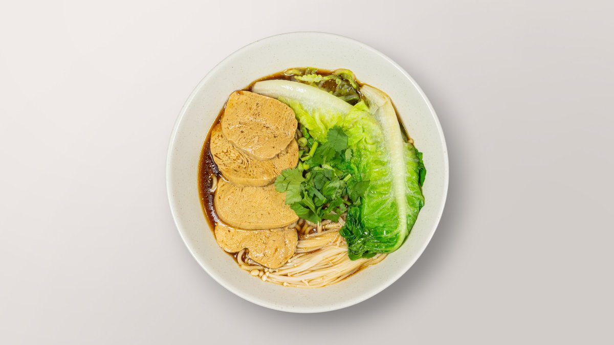 mit geschmortem vegetarischem Soja-Hähnchen