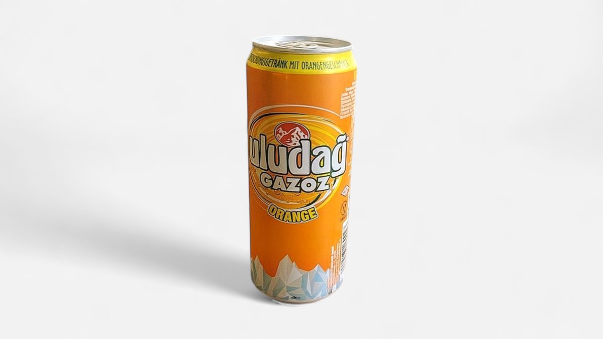 Kohlensäurehaltiges Erfrischungsgetränk mit Orangengeschmack, Zucker, enthält natürliche Aromen
