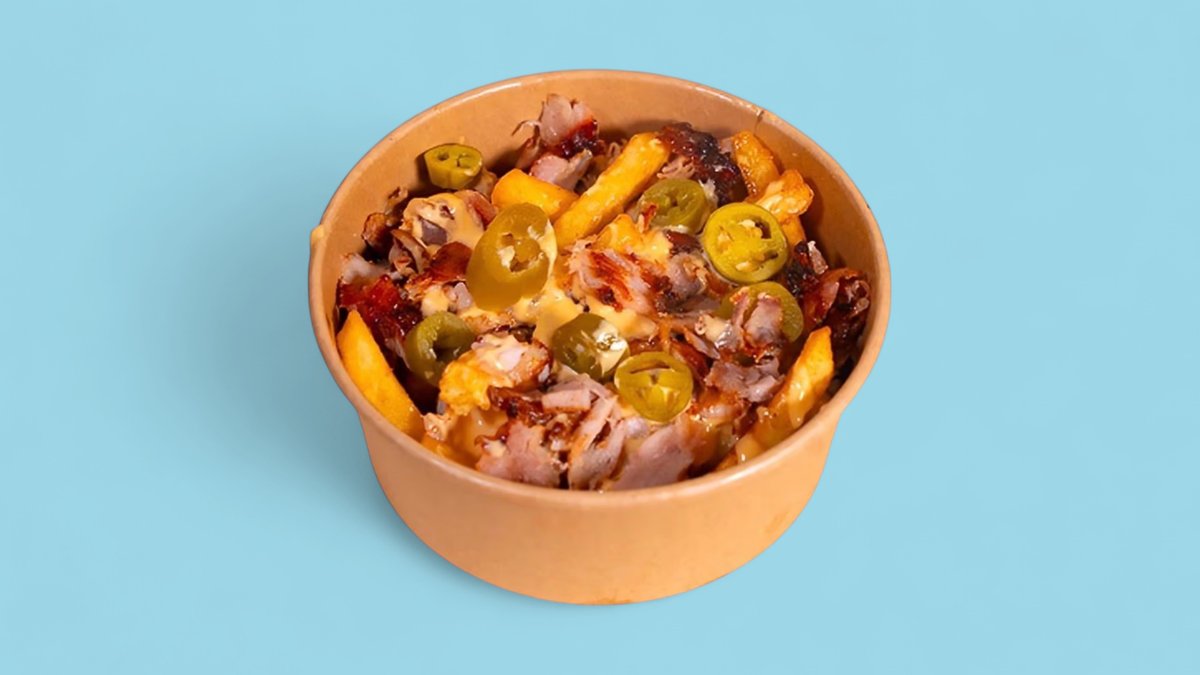 Pommes frites, Chickendöner, Jalapeños, scharfe Soße