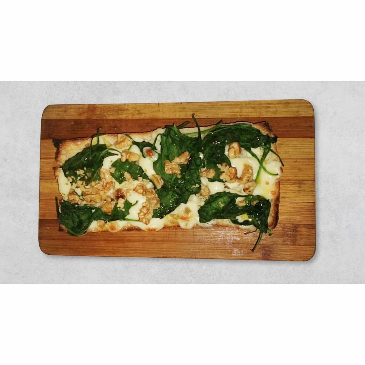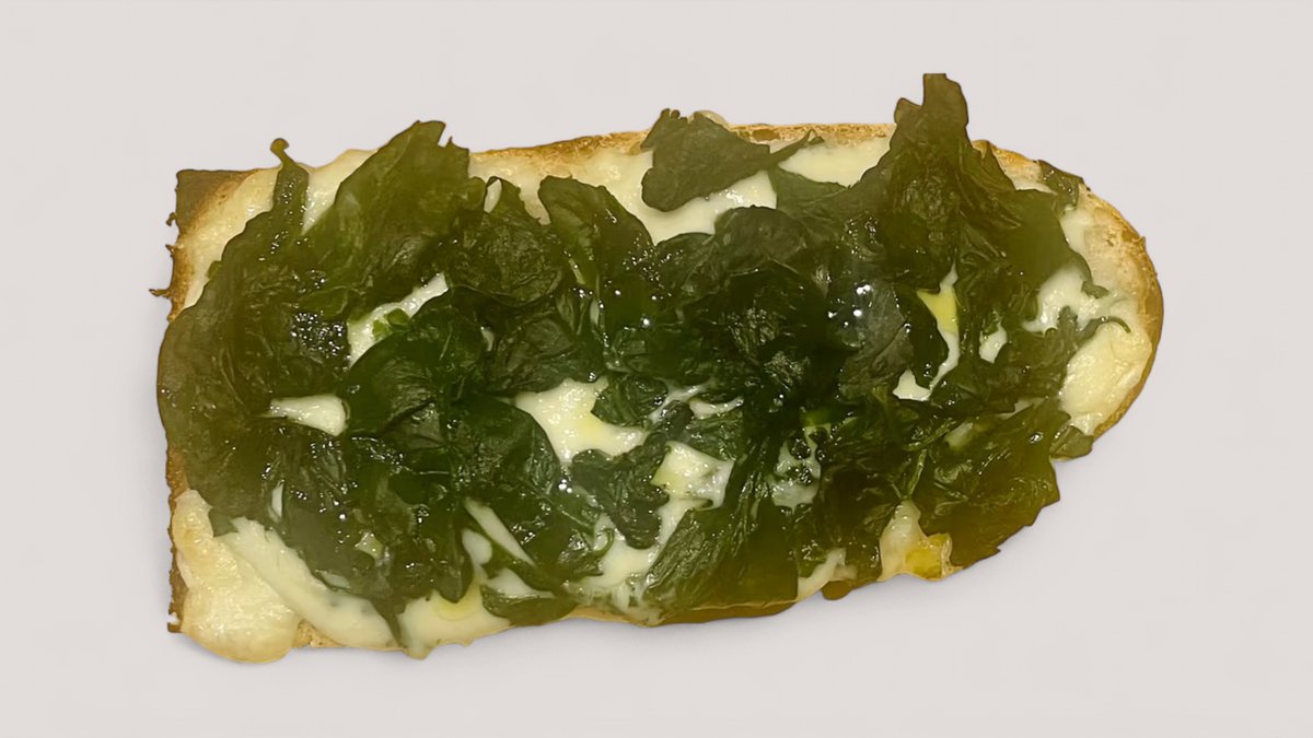 mit Gorgonzola, Spinat, Öl, Salz und Pfeffer