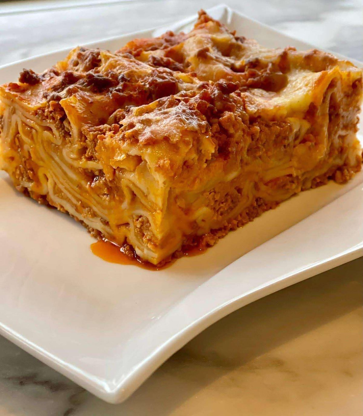 mit Ragu, Mozzarella, Parmesan und Besciamella