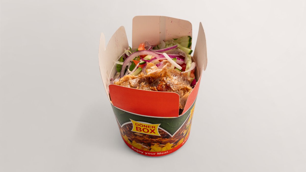 alle Gerichte werden mit Kalbfleisch vom Drehspieß, Eisbergsalat, Rotkohl, Zwiebeln, Tomaten, Gurken, Feldsalat-Mix und Soßen deiner Wahl zubereitet („Chicken Döner” wird ohne Kalbfleisch vom Drehspieß zubereitet)