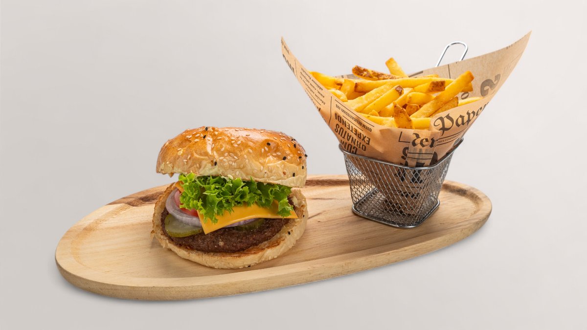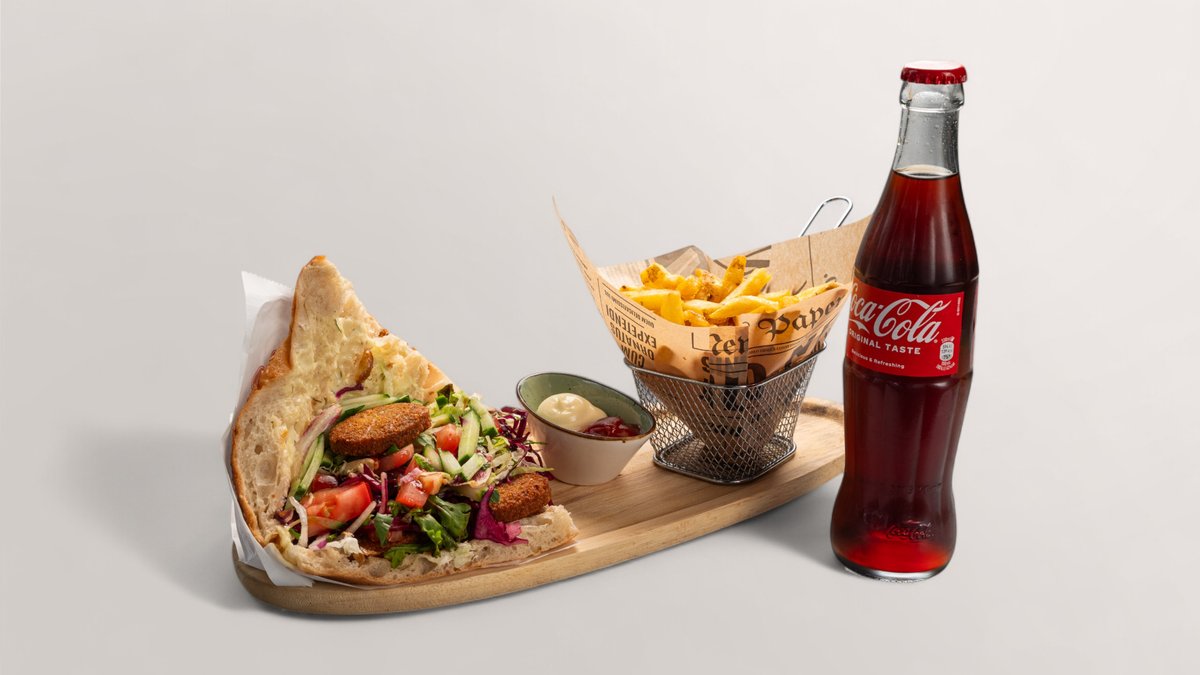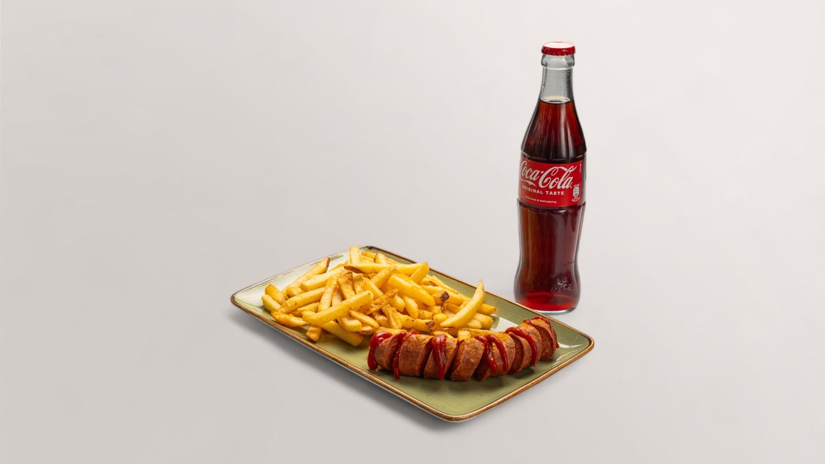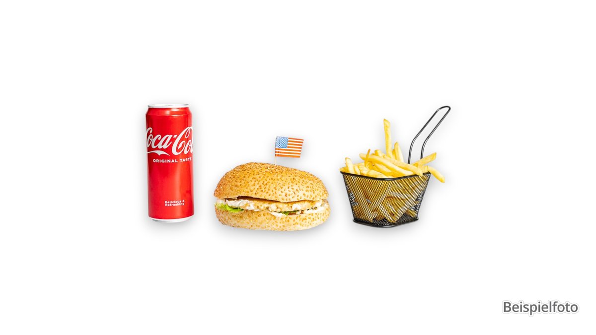 alle Menüs werden mit Pommes frites, 3 Soßen und einem Getränk deiner Wahl serviert
