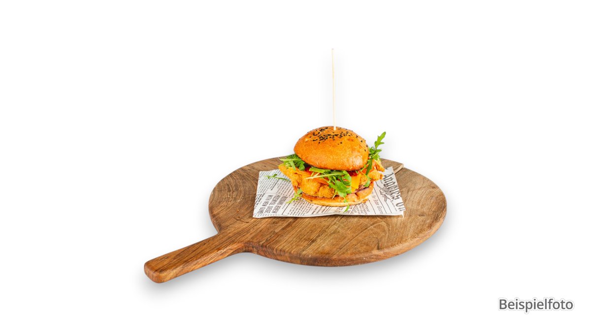 mit paniertem Hähnchenfleisch, Cheddar, Emmentaler und hausgemachter Burgersoße