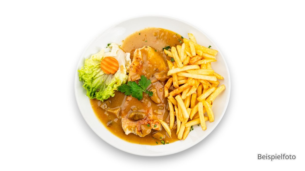 mit Hähnchenfleisch, Panade und einer Soße deiner Wahl