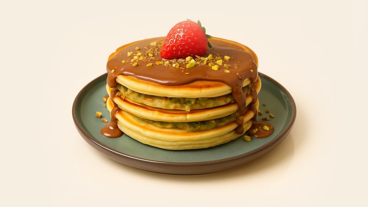fluffige Pancakes, Schicht für Schicht mit cremigem Nutella Ferrero bestrichen und on top veredelt mit feinster belgischer Schokolade Das Gericht wurde mit Schokolade zubereitet und kann Spuren von verschiedenen Nüssen enthalten