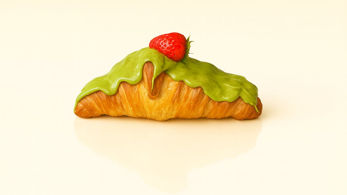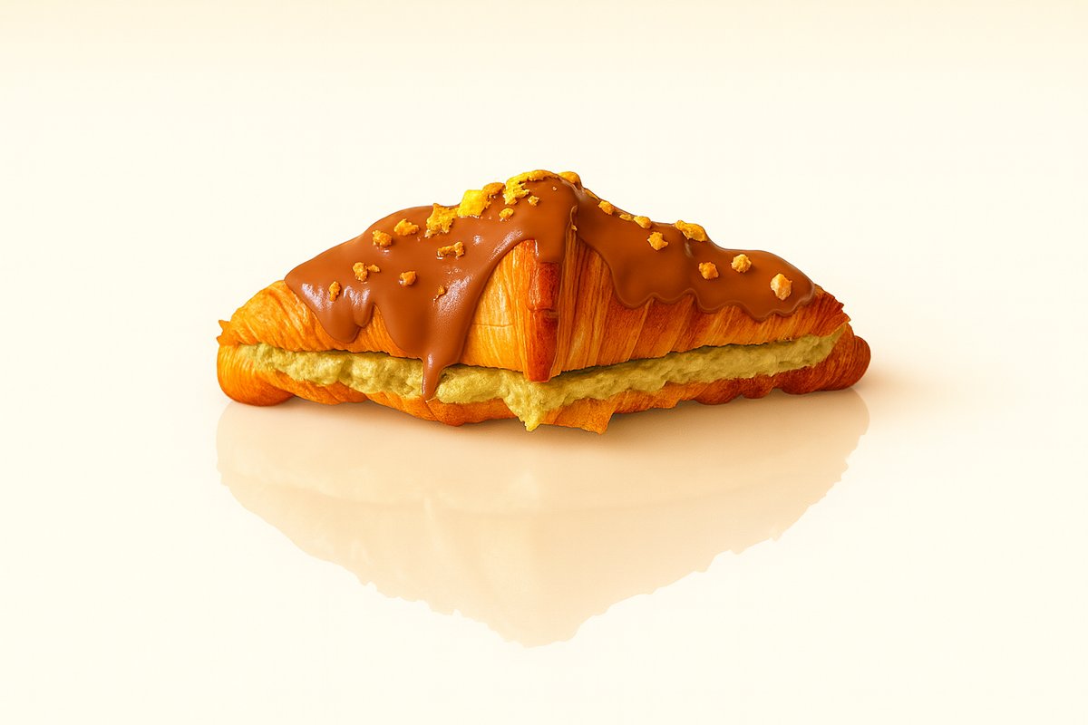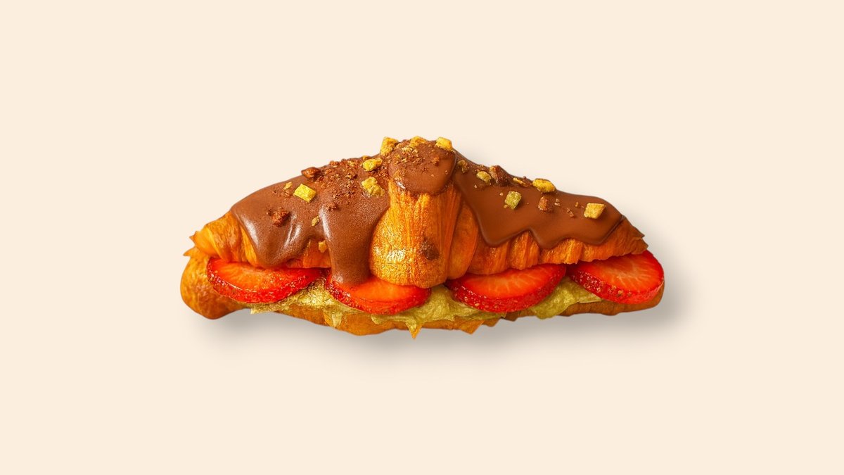 Croissant mit cremiger Matcha Glasur und feinster belgischer Schokolade knusprig, zart und einzigartig