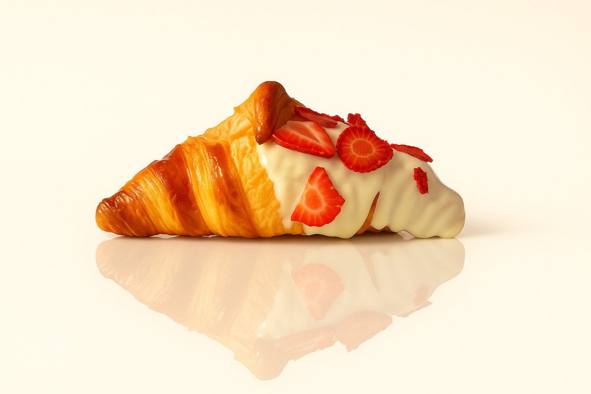 frisch gebackene Croissants, süß gefüllt mit belgischer Schokolade - weiß, Vollmilch oder Zartbitter und frischen Erdbeeren, wähle aus verschiedenen Toppings und stelle dir dein Lieblingscroissant zusammen