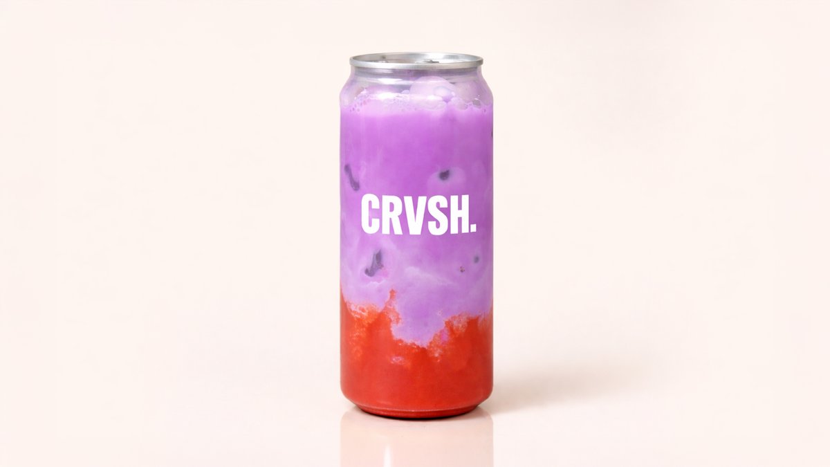 cremiger Drink aus Ube, der violetten Süßkartoffel-Pommes, verfeinert mit hausgemachtem Erdbeerpüree, mild süßlich, leicht nussig im Geschmack, erfrischend cremig und perfekt gekühlt