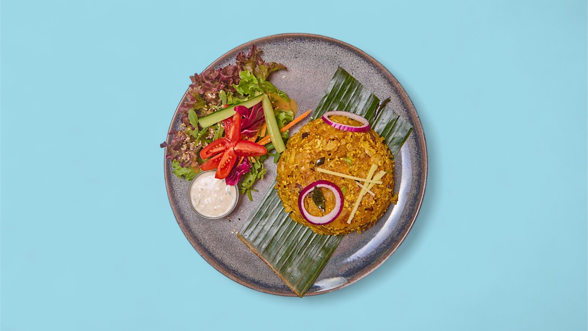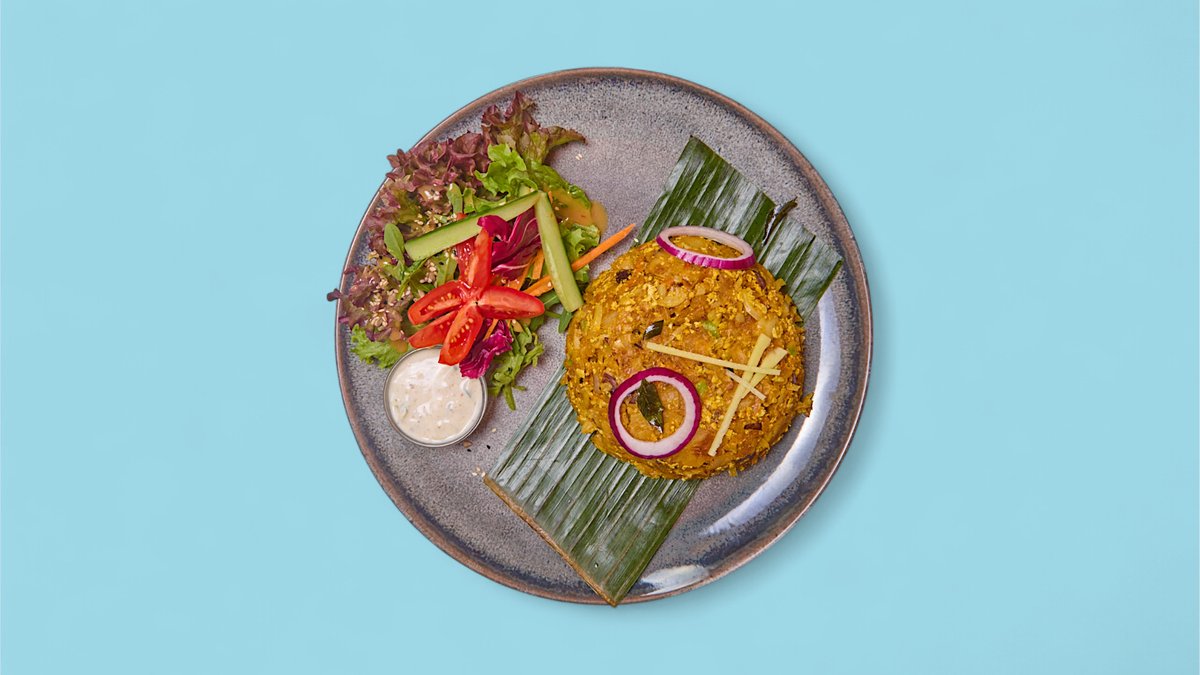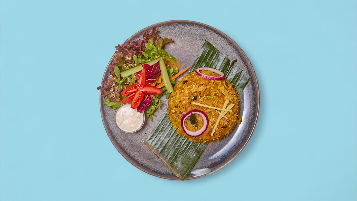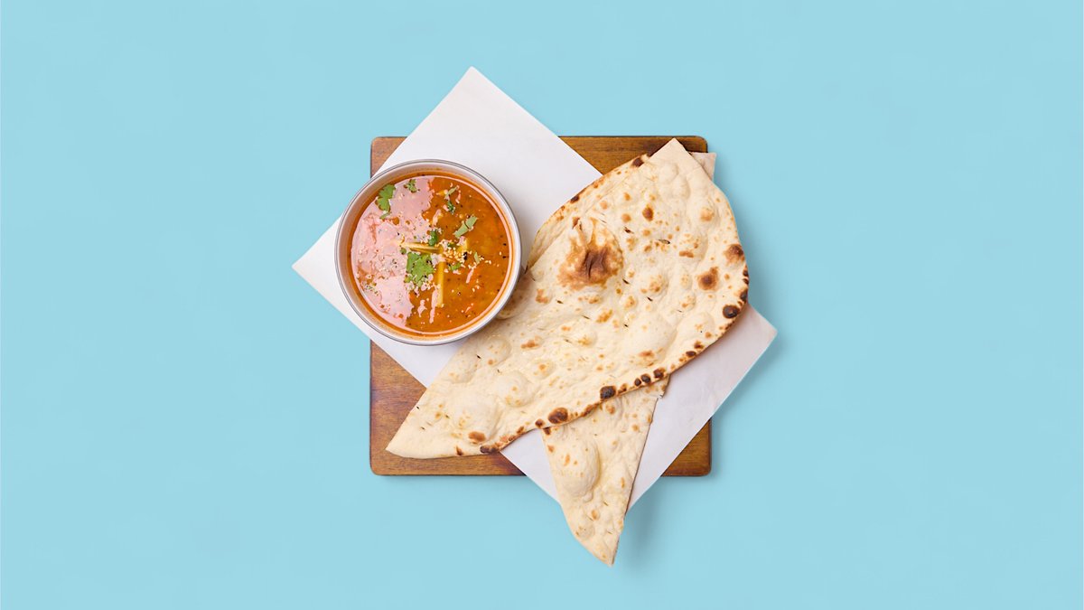 blätterteigiges, zerkleinertes Fladenbrot in würzigem Curry Masala mit einer Zutat deiner Wahl
